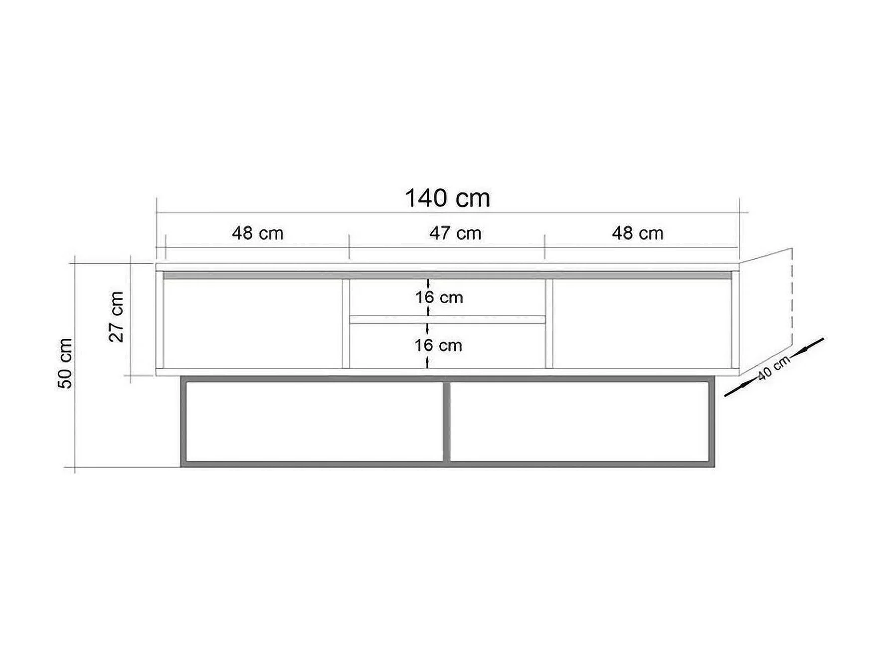 Meuble TV Selena, Buffet de salon, Armoire basse pour TV, Base murale de rangement, 140x40h50 cm, Noyer et Noir