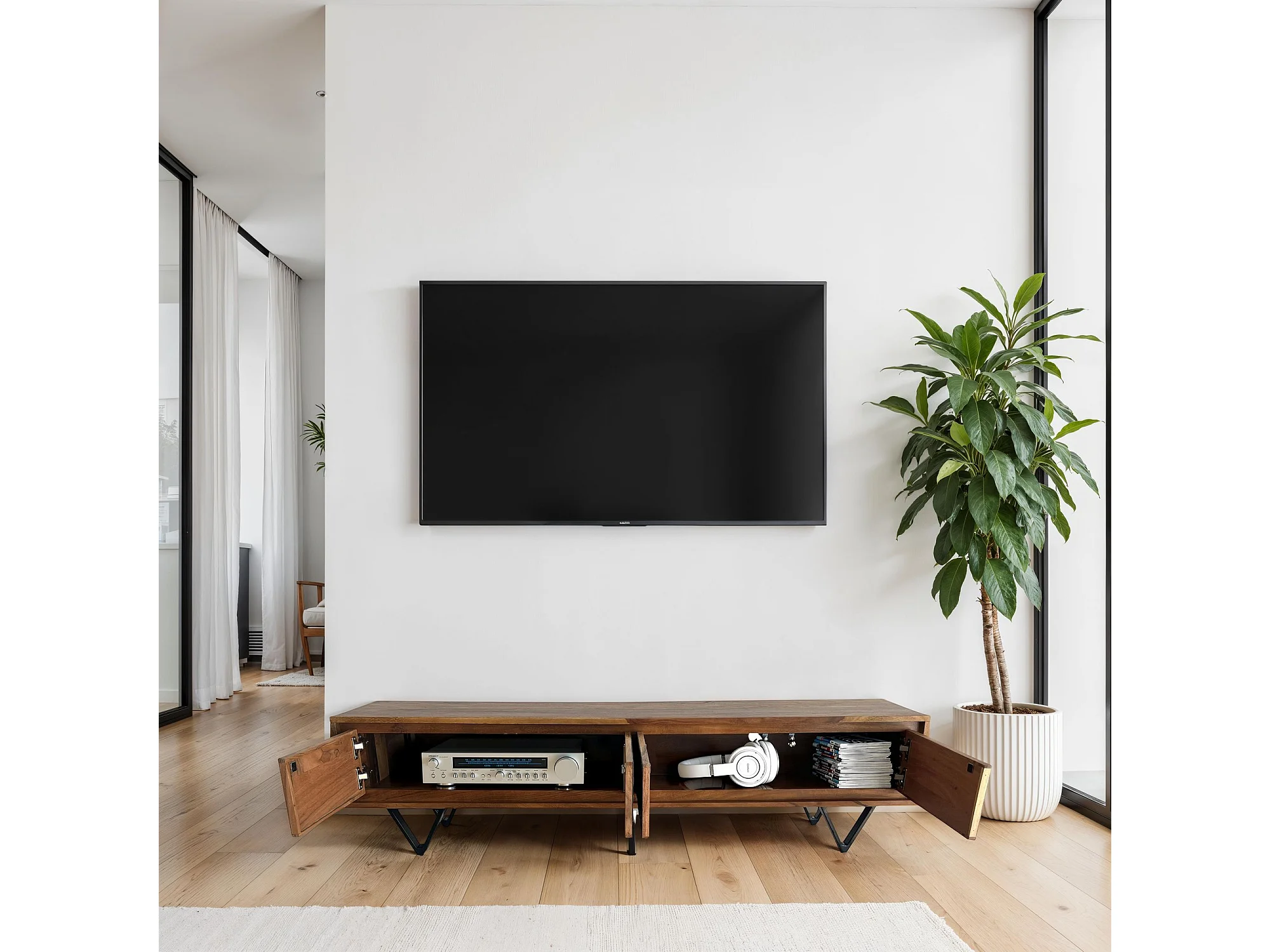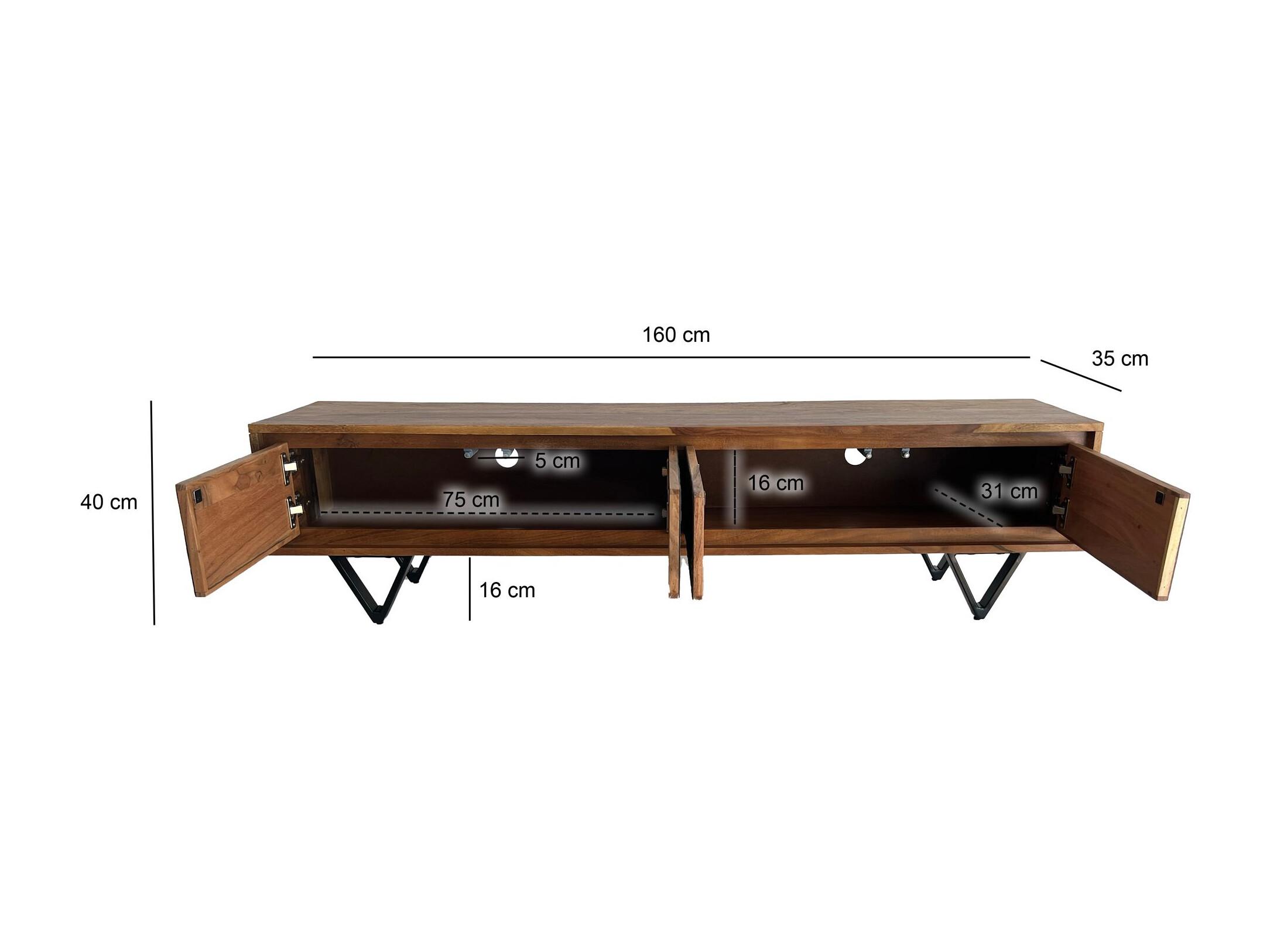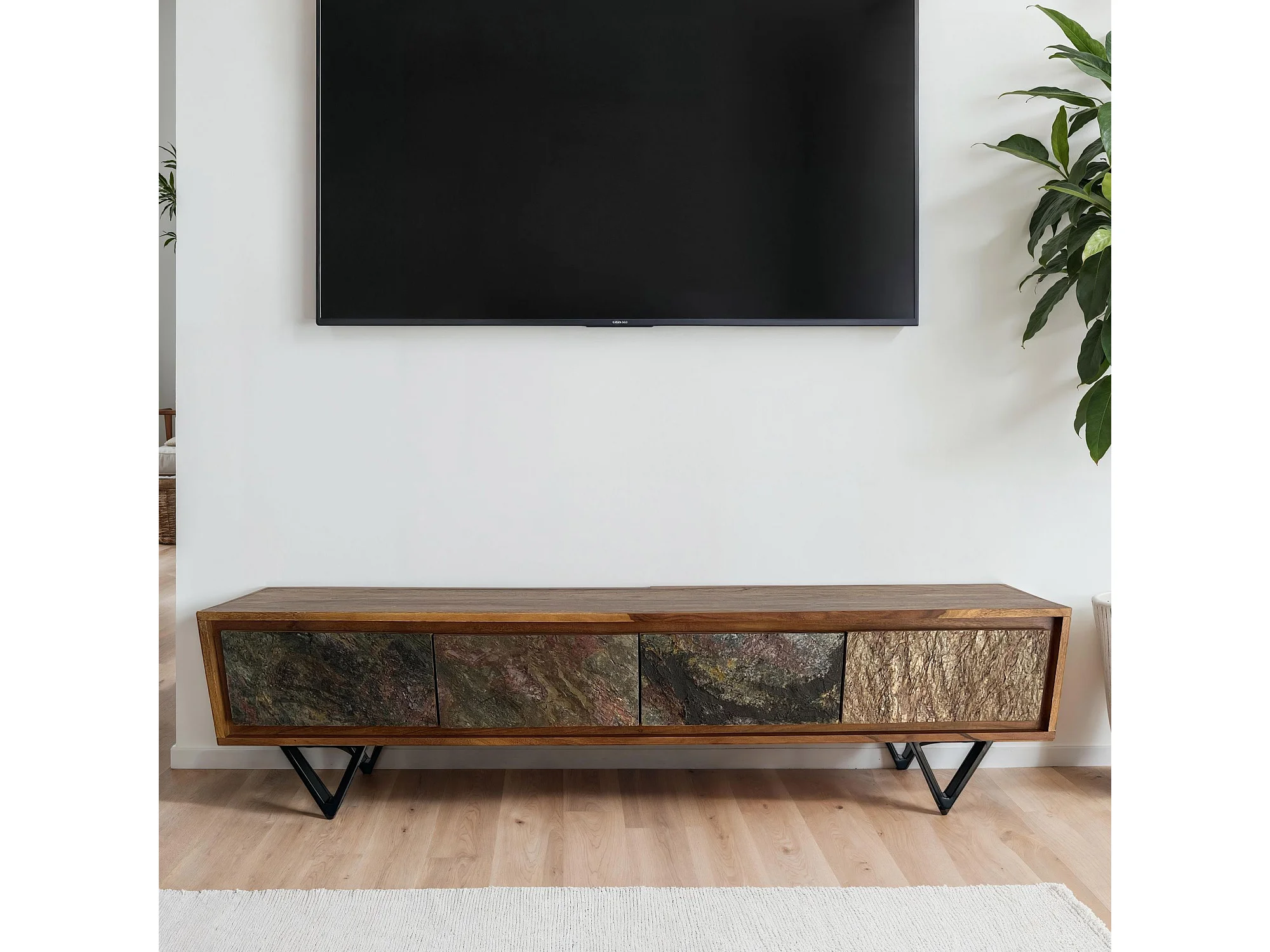Meuble TV Sheesham 160 cm Bois Massif Métal Noir Style Industriel