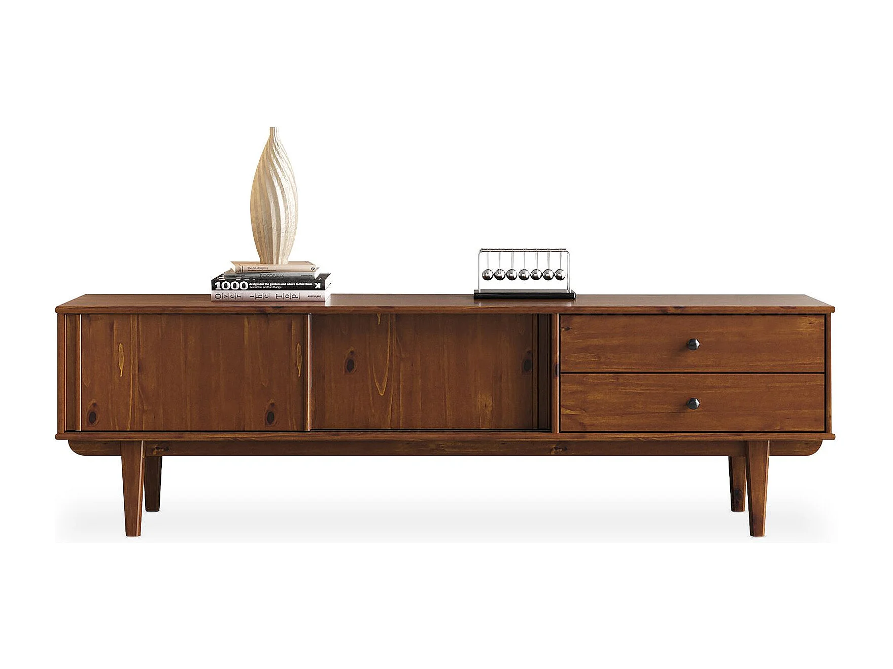 Meuble TV SIMONA L 175 cm en Bois Massif Coloris Châtaignier avec 2 Tiroirs 2 Portes Coulissantes, Pour téléviseur jusqu'à 75"