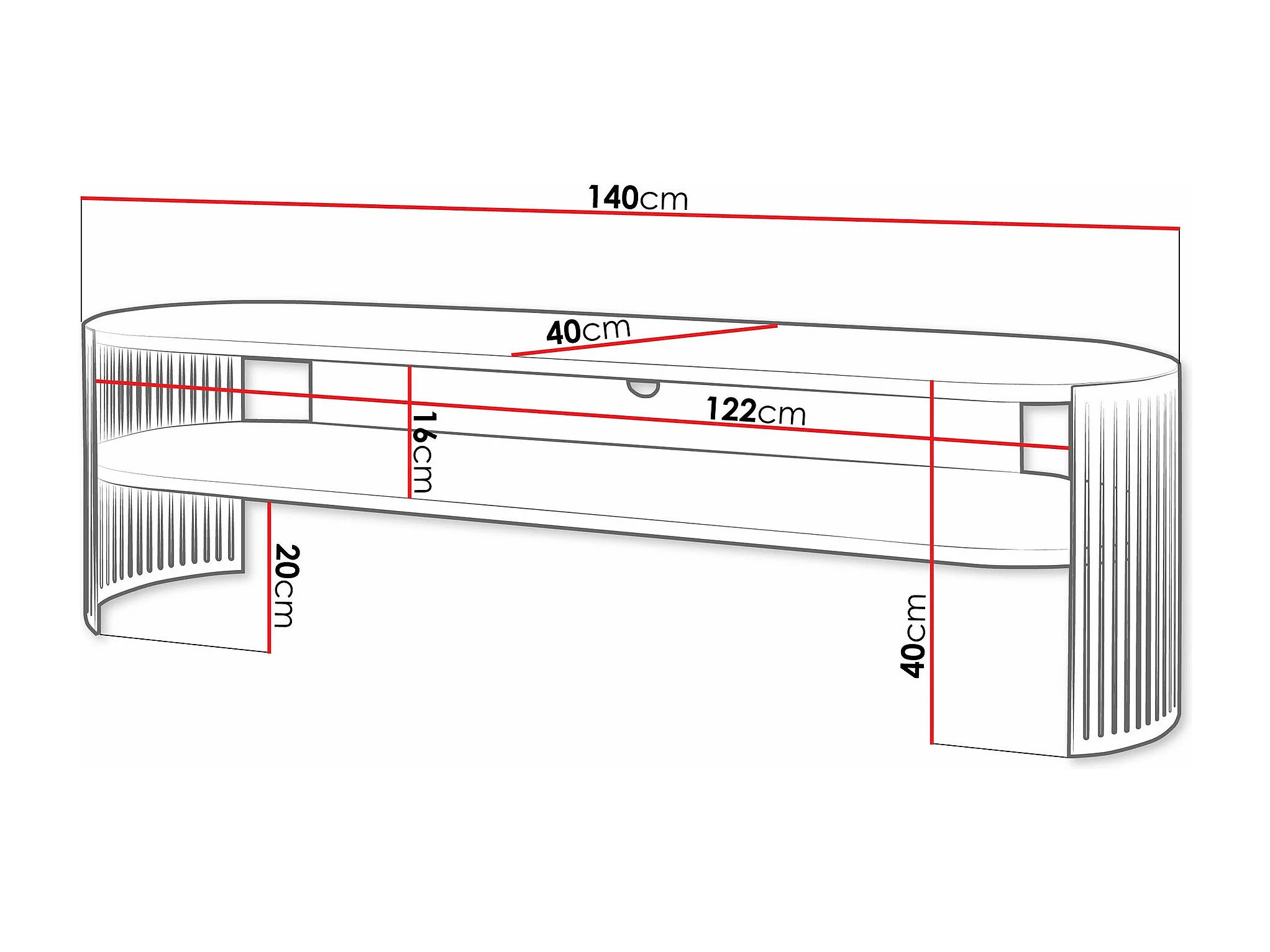 Meuble TV Sordore 122, Noir|Doré, 140x44x40cm
