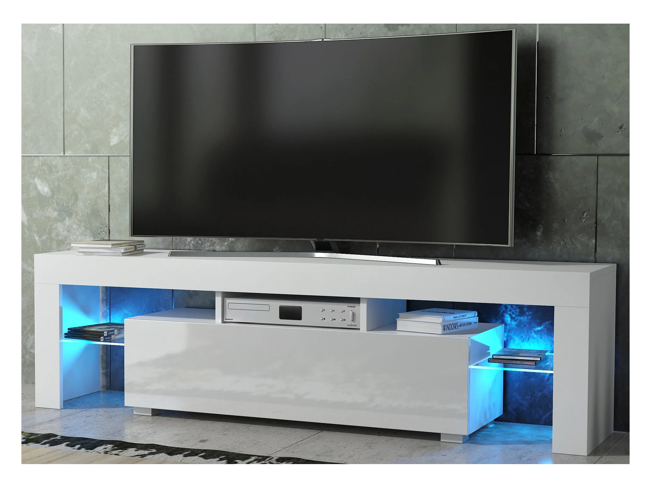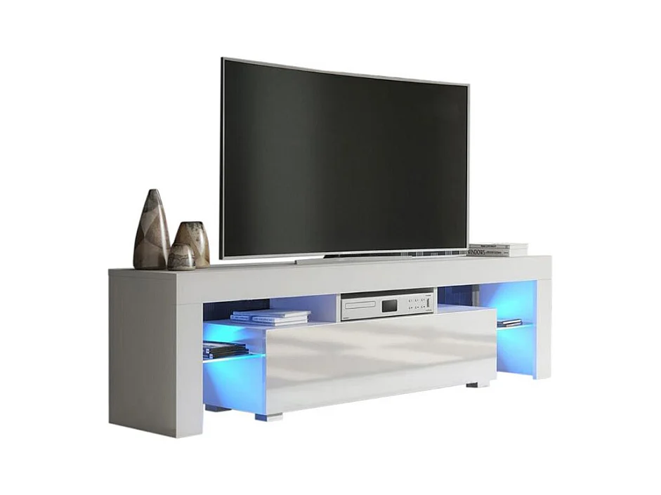 Meuble TV SPIDER A LED en Blanc MAT avec porte Blanc Laqué 160 cm