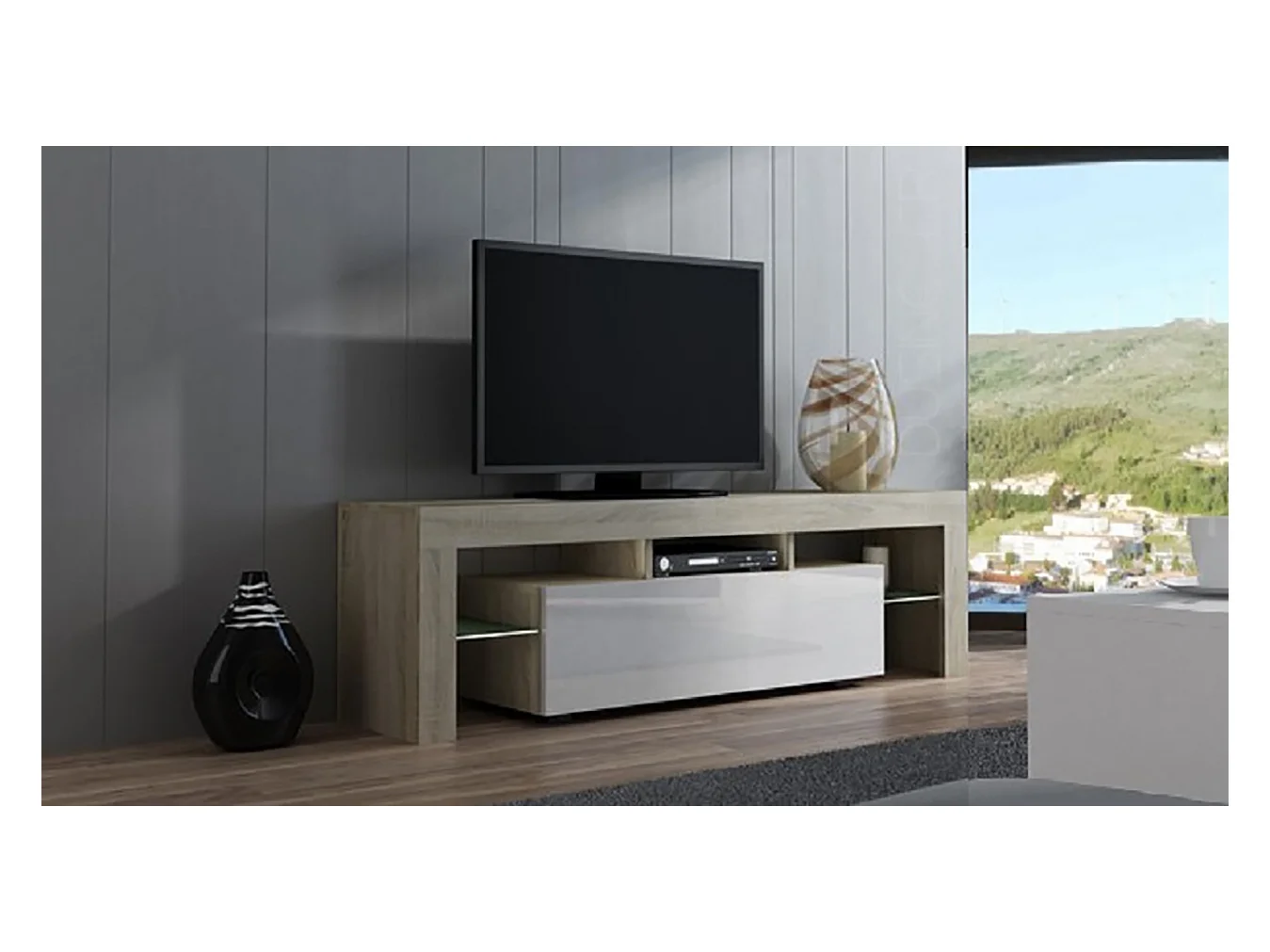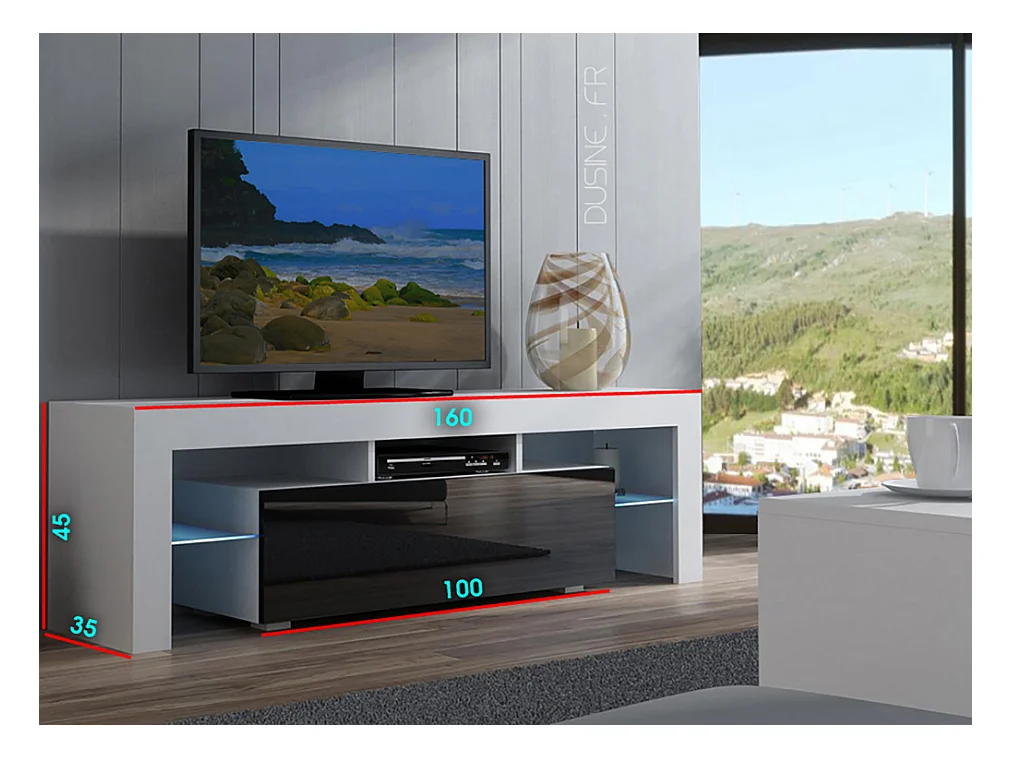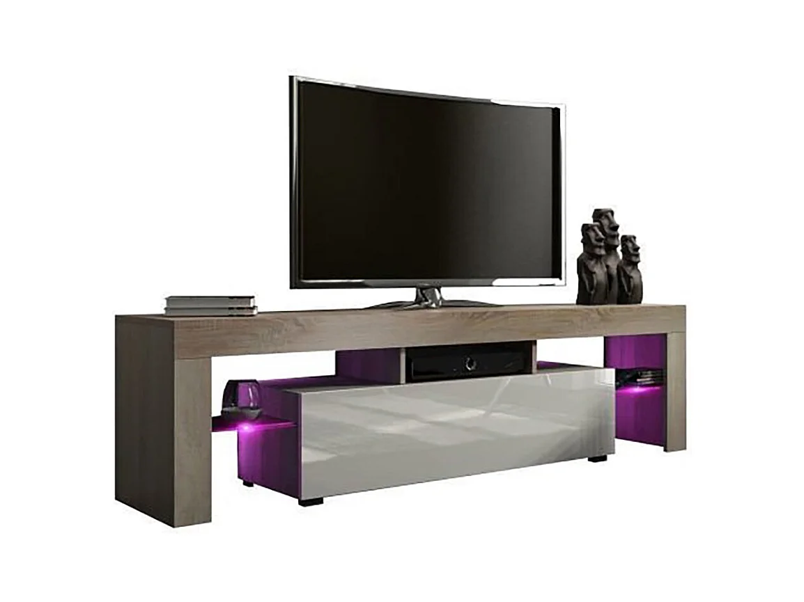 Meuble TV SPIDER A LED en Chêne MAT avec porte Blanc Laqué 160 cm