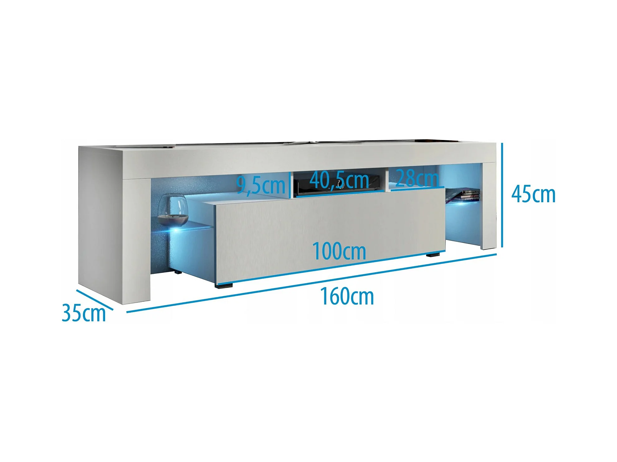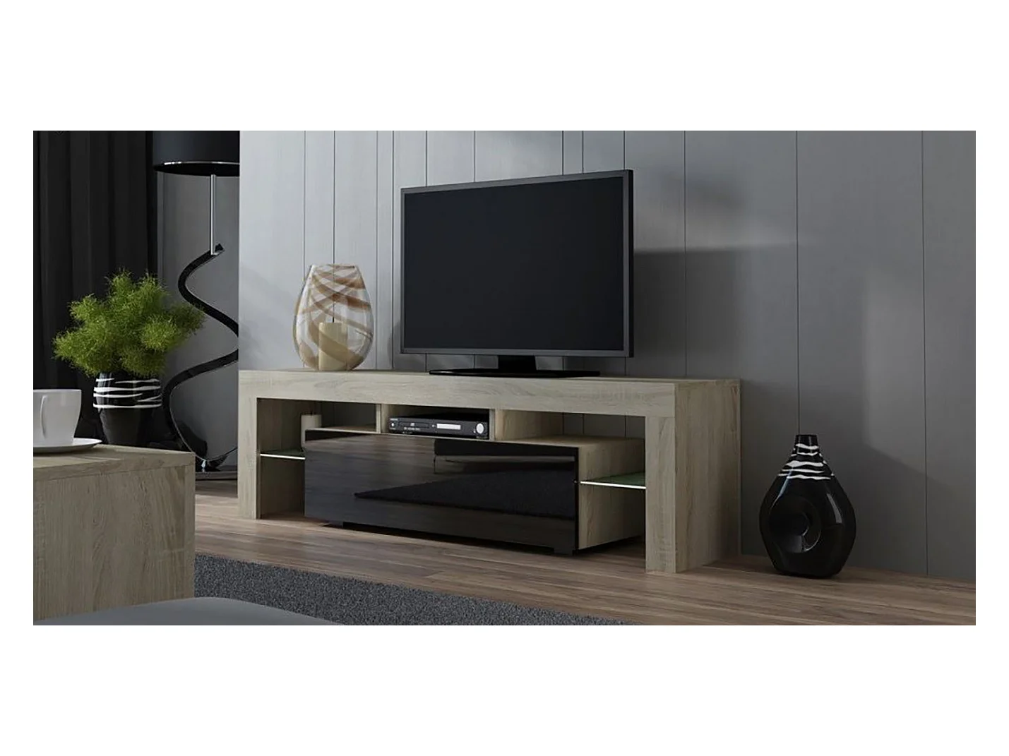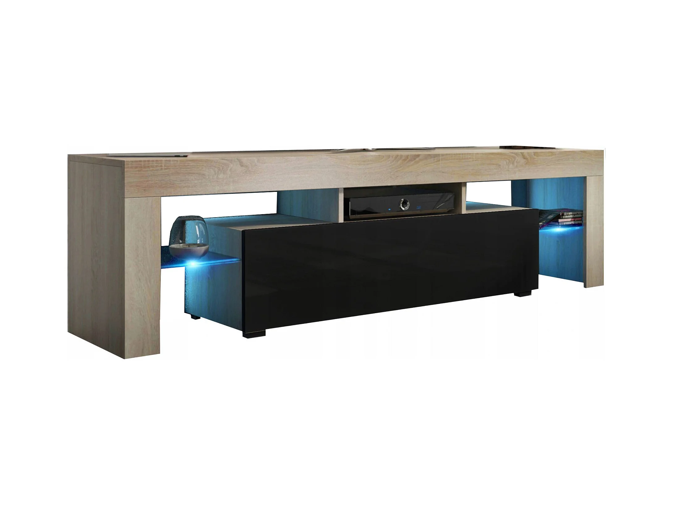 Meuble TV SPIDER A LED en Chêne MAT avec porte Noir Laqué 160 cm