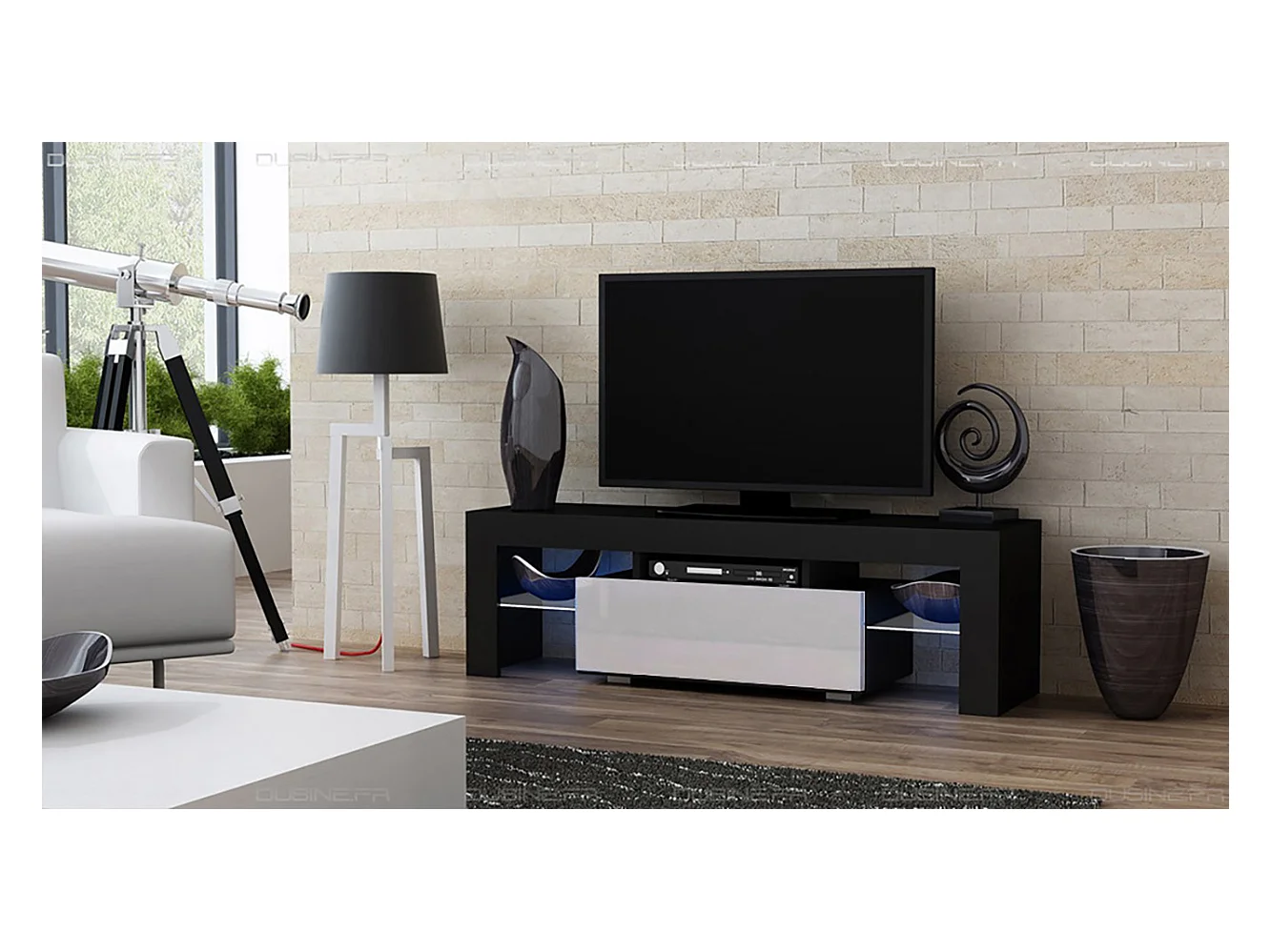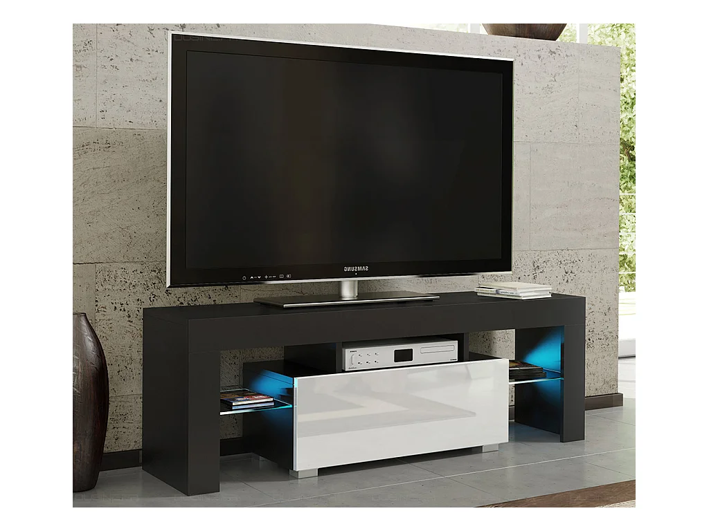 Meuble TV SPIDER A LED en MAT Noir avec porte Blanc Laqué 130 cm