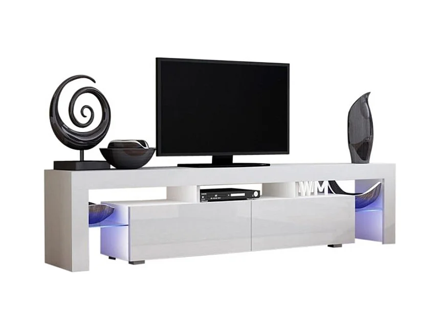 Meuble TV SPIDER BIG A LED en Blanc MAT avec portes Blanc Laqué 200 cm