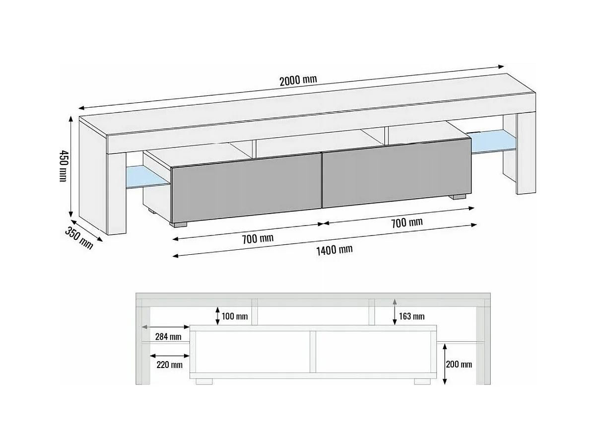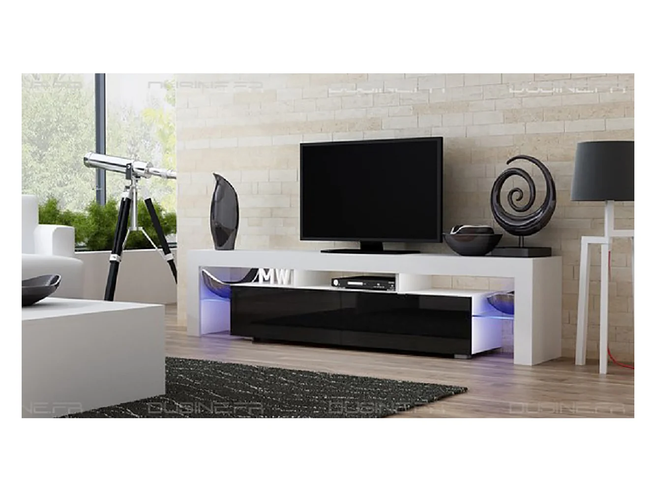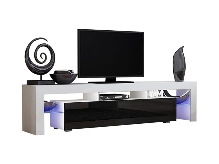 Meuble TV SPIDER BIG A LED en Blanc MAT avec portes Noir Laqué 200 cm
