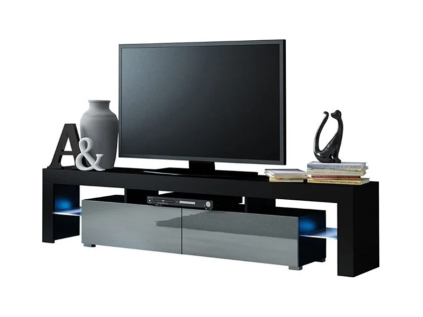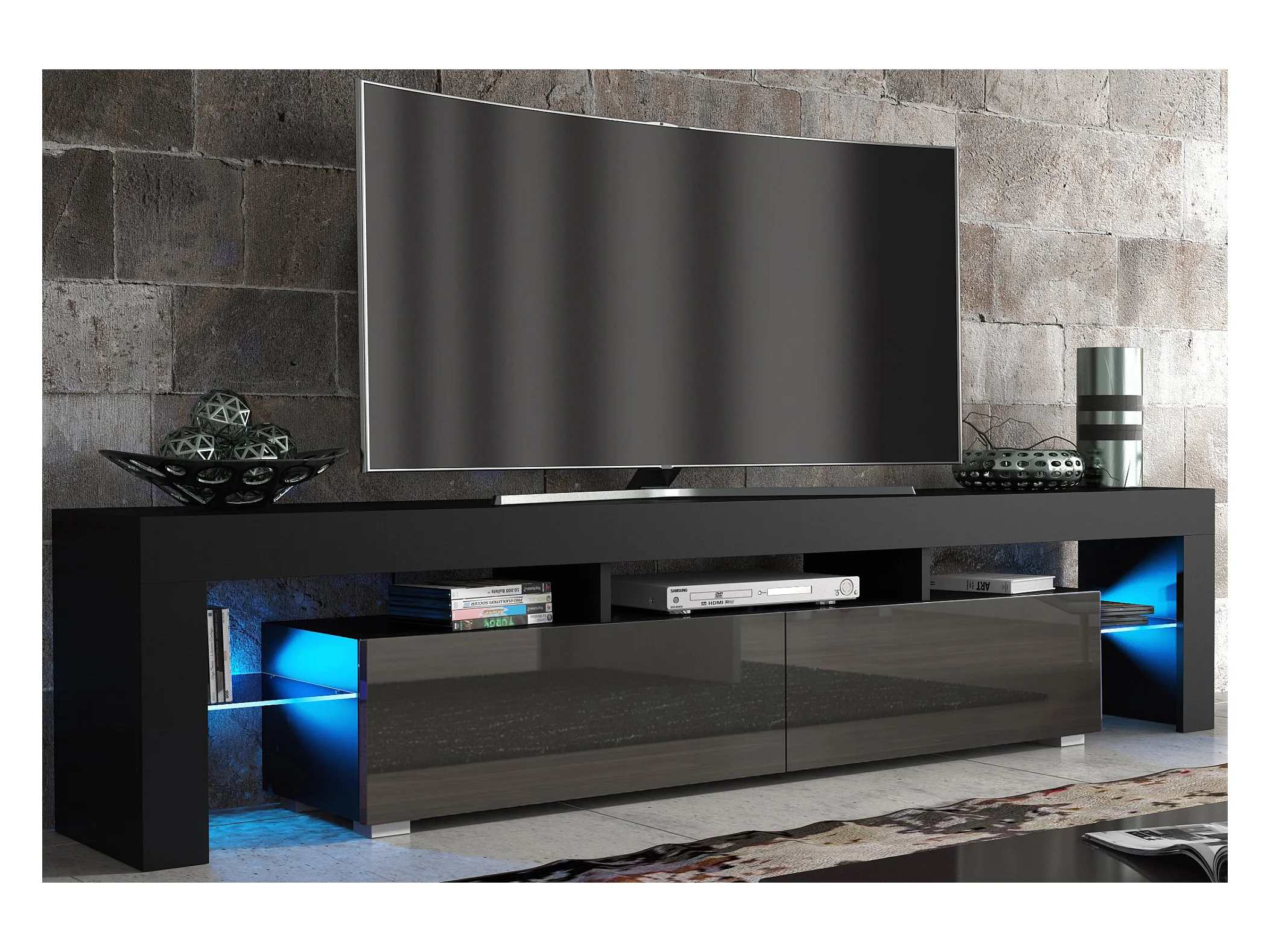 Meuble TV SPIDER BIG A LED en Noir MAT avec portes Gris Laqué 200 cm