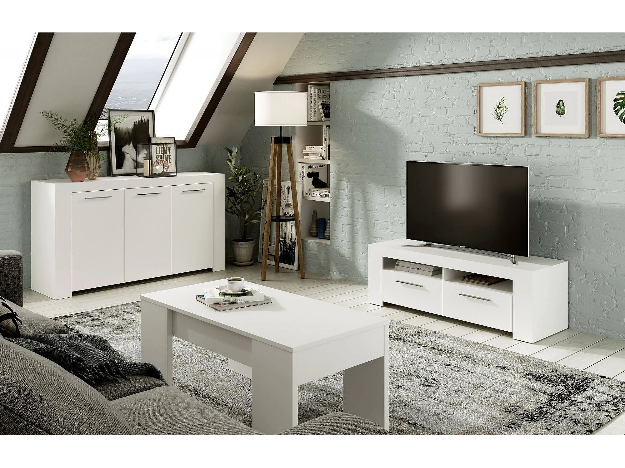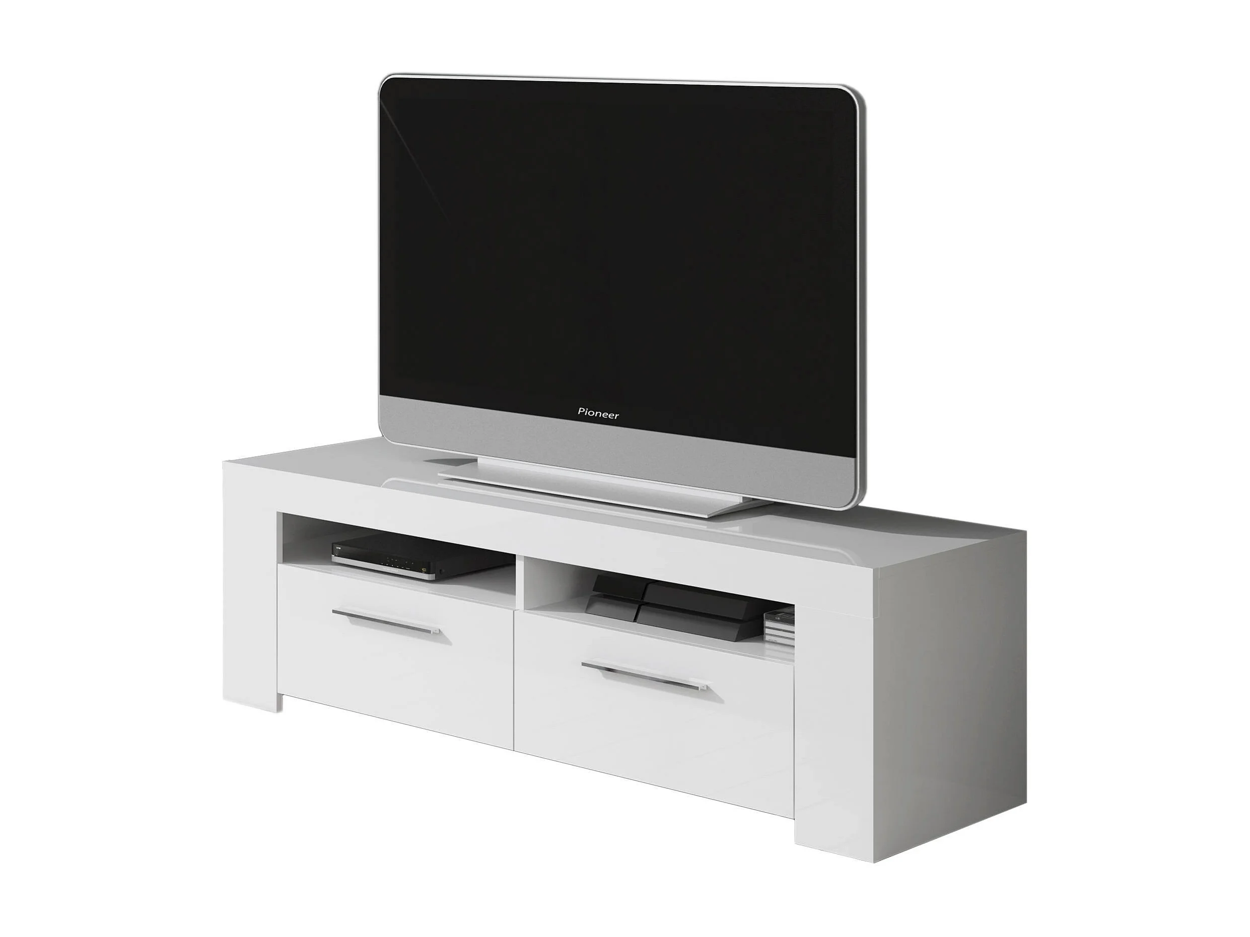 Meuble TV Stamford, Buffet pour télévision de salon, Meuble TV 2 portes, Buffet bas pour salon, 120x42h40 cm, Blanc brillant