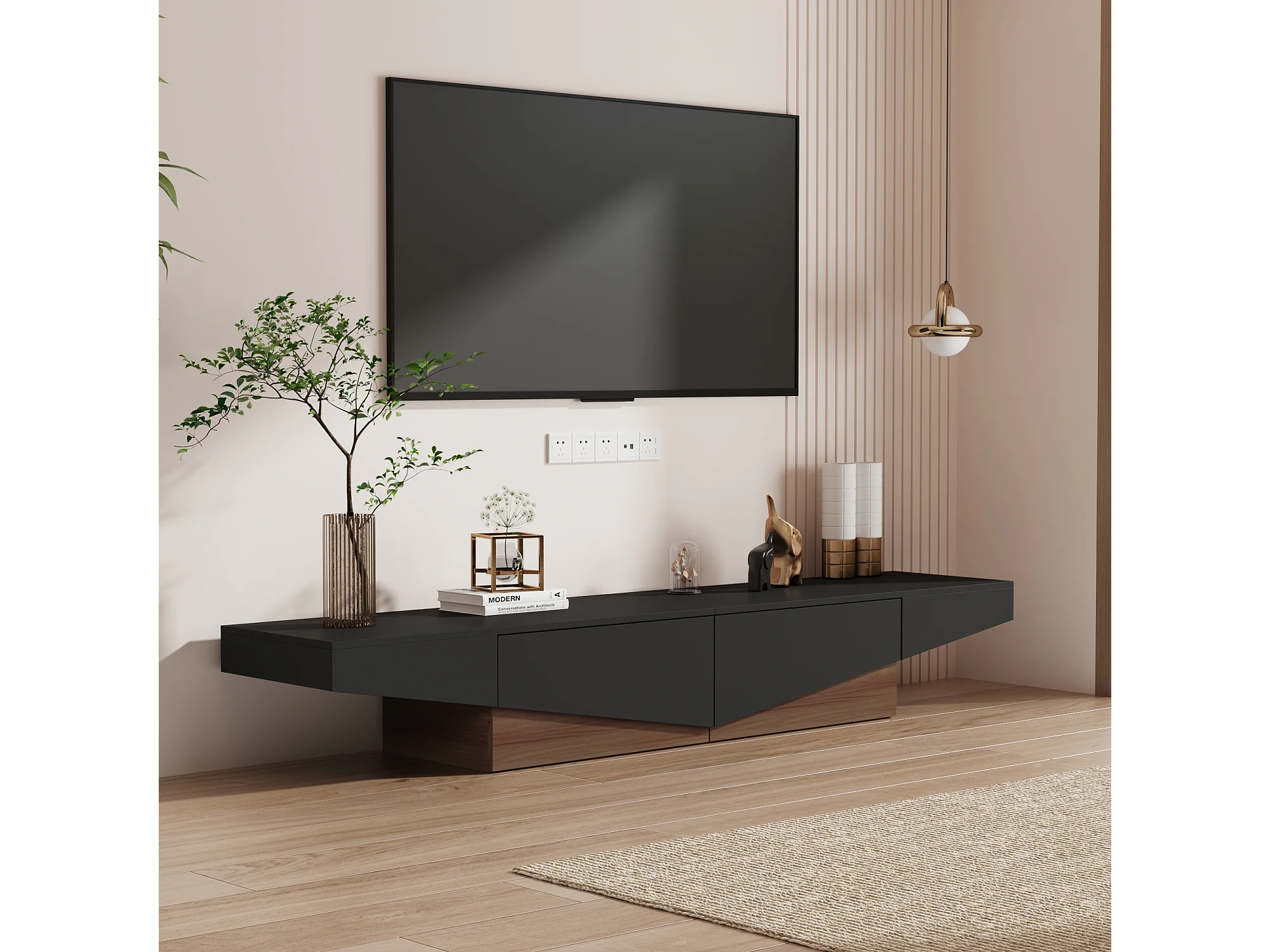 Meuble TV - Support TV avec 2 Tiroirs, Meuble Bas de forme triangulaire inversée, Salon, 200 x 40 x 30.5cm, Noir et Marron