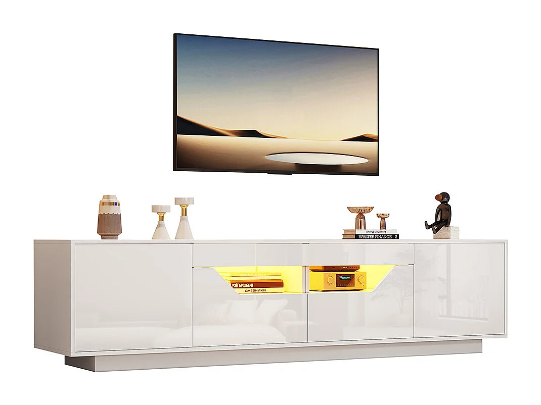Meuble TV sur pied 180x40x45 cm 2 tiroirs 2 armoires brillant LED TV 75 pouces blanc