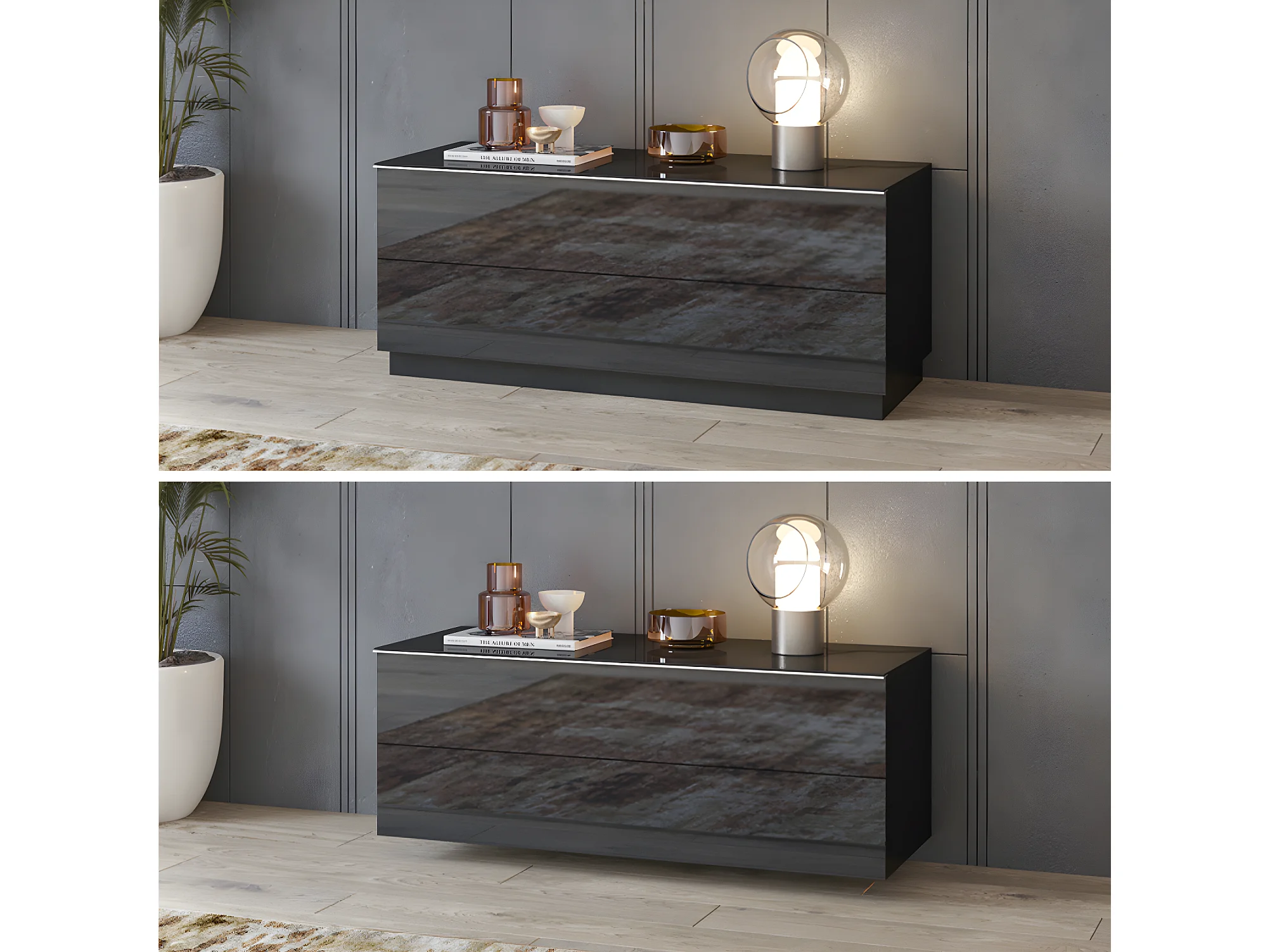 Meuble TV sur pied ou mural 1 porte 120 cm Mathis Noir