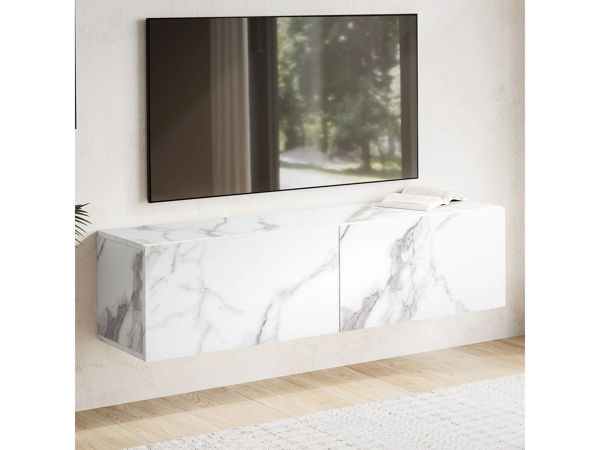 Meuble TV Suspendu 120 cm Lowboard Aspect Marbre Commode TV Mural