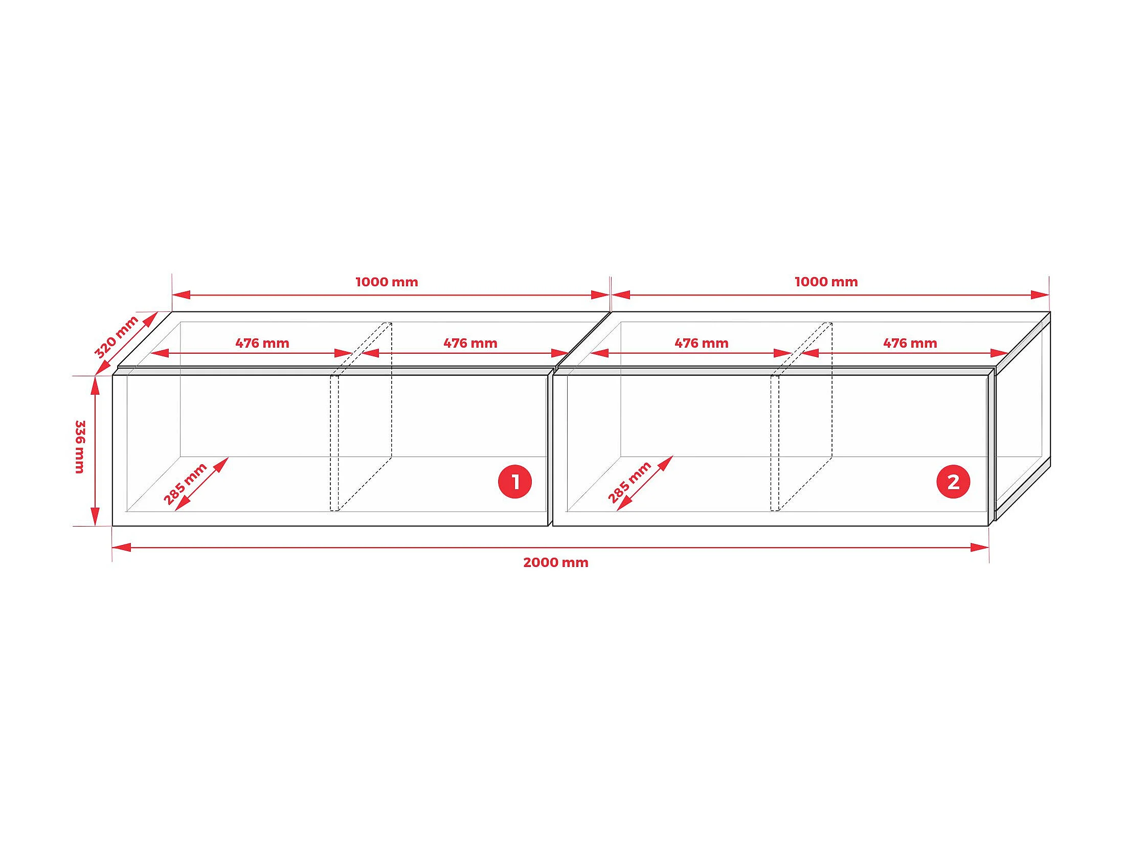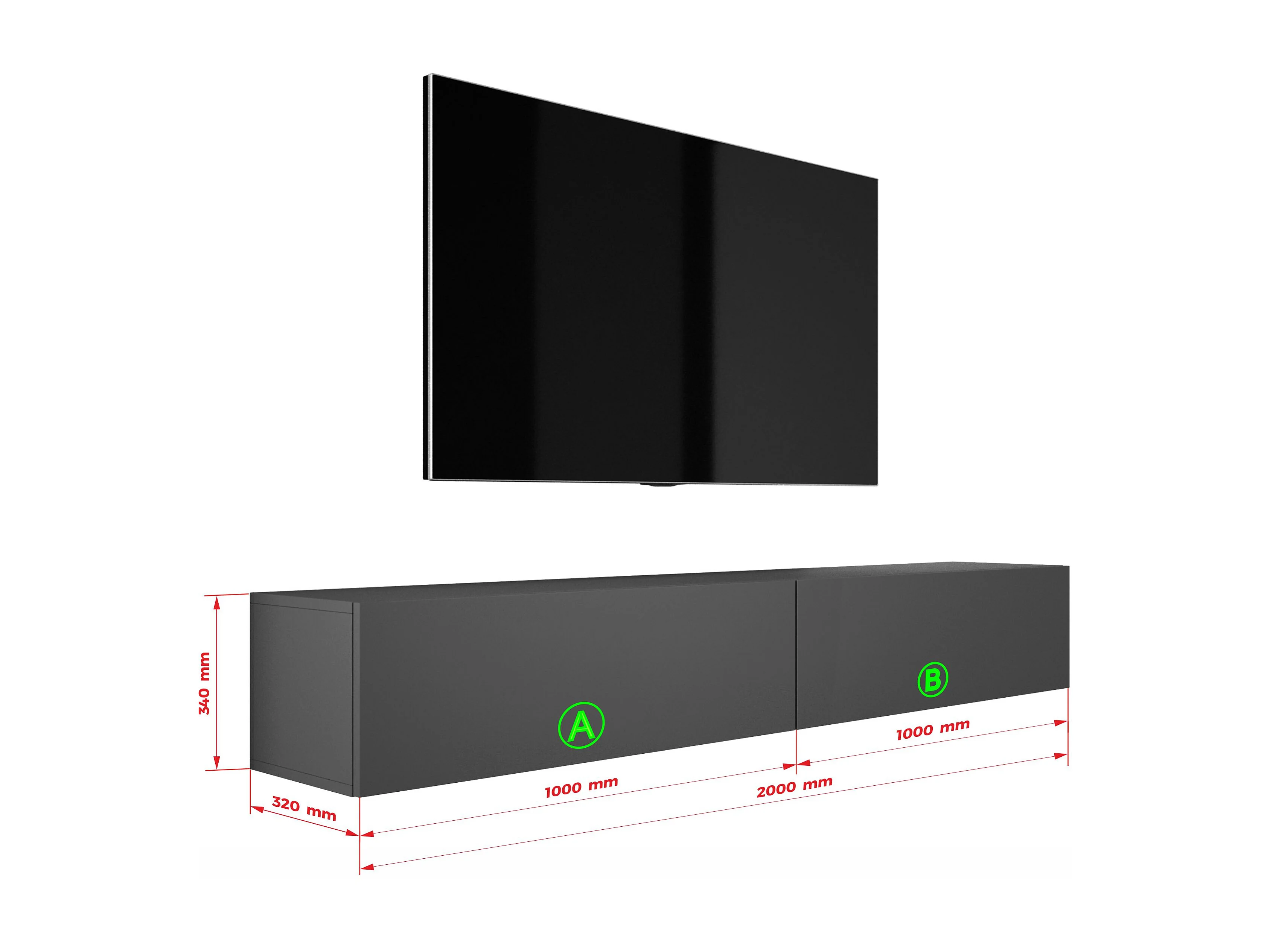 Meuble TV Suspendu, (2 x 100) x 34 x 32 cm, Anthracite
