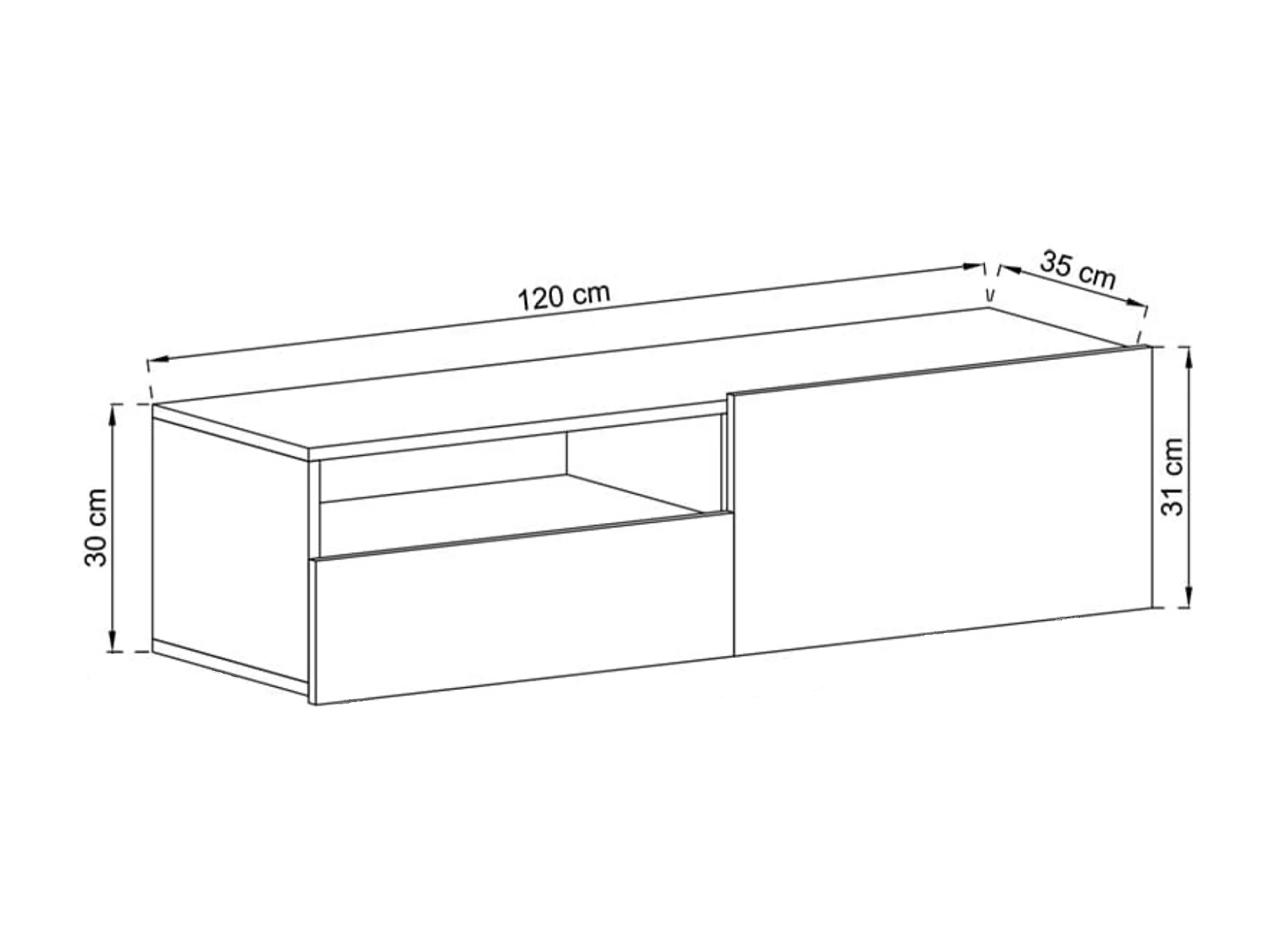 Meuble TV suspendu avec 1 portes et niche, tiroir - corps Cachemire mat, façades Cachemire mat - 120 cm