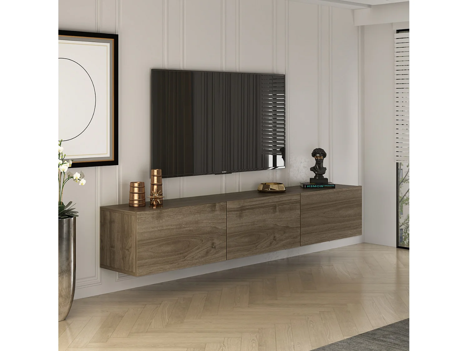 Meuble TV suspendu avec placards 150cm noyer HAL