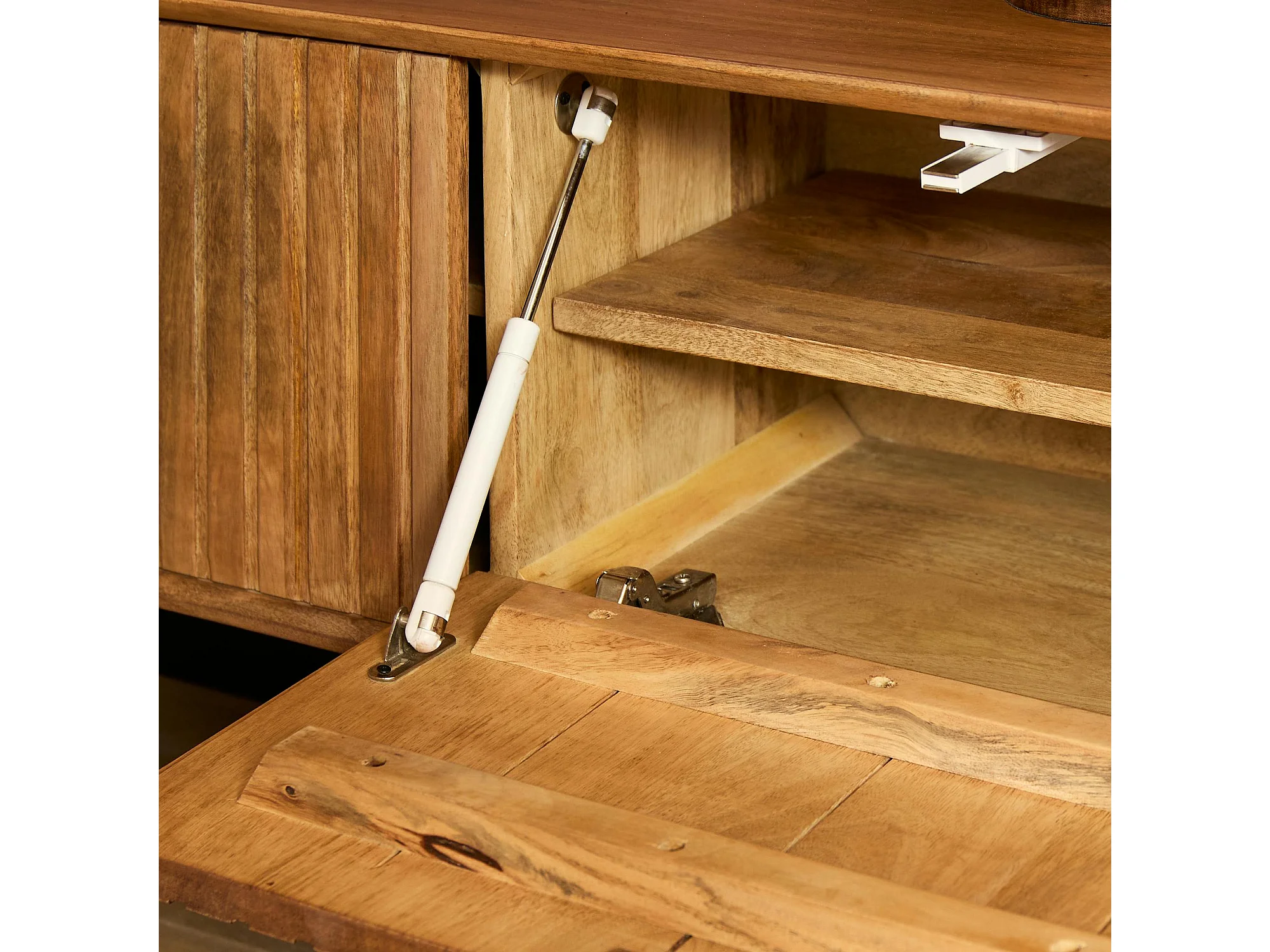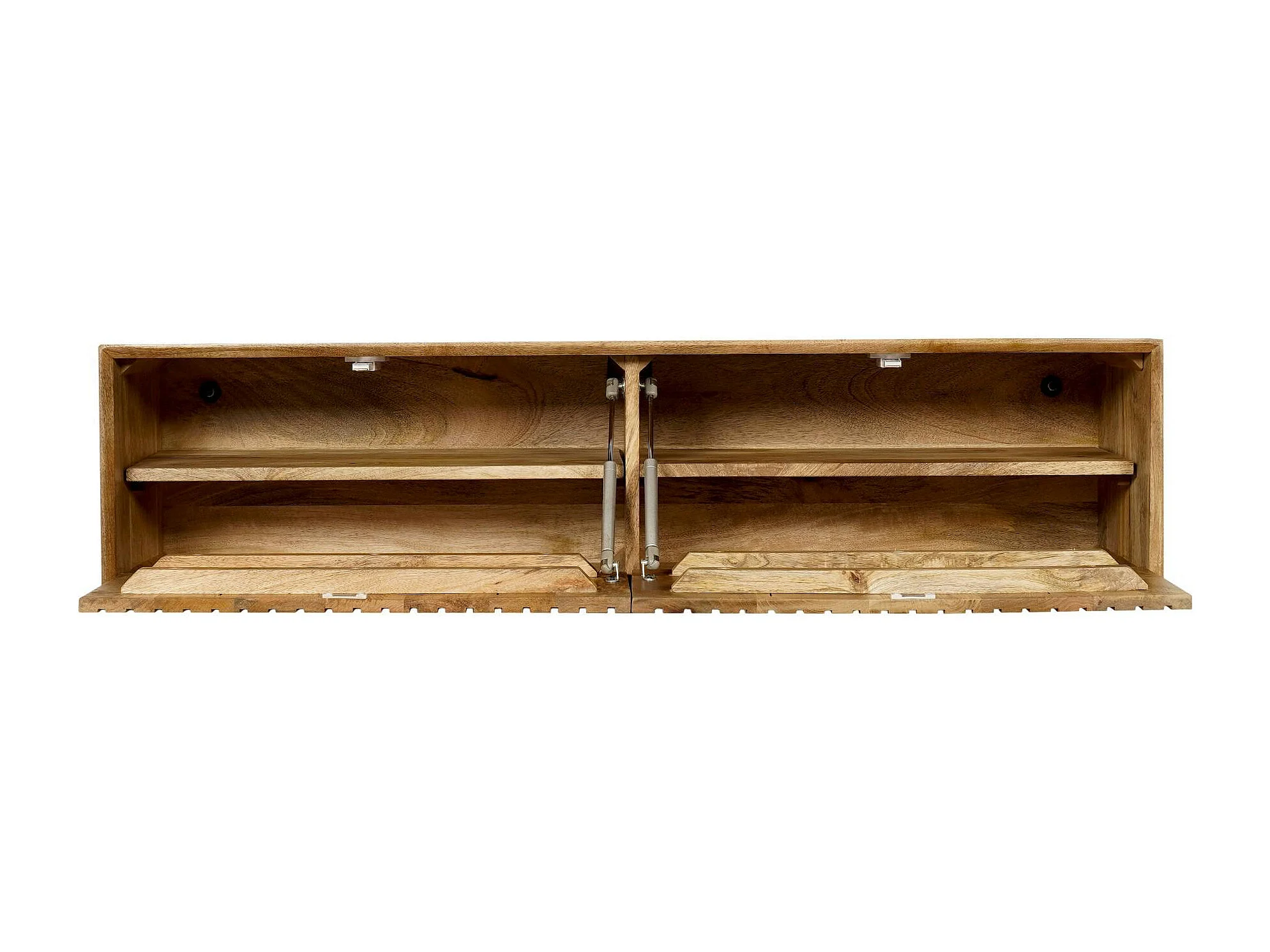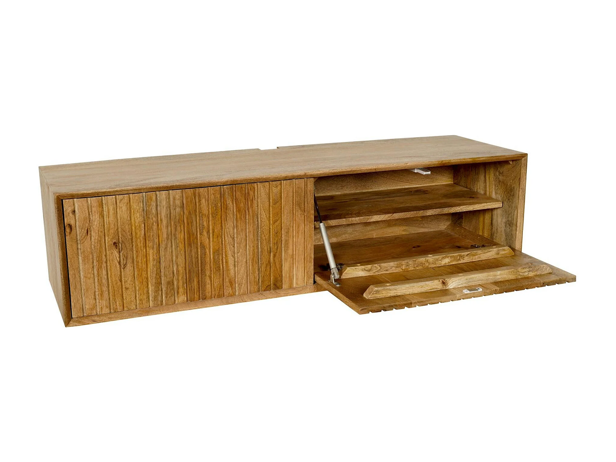 Meuble TV suspendu bois 2 portes rainurées CORTINA