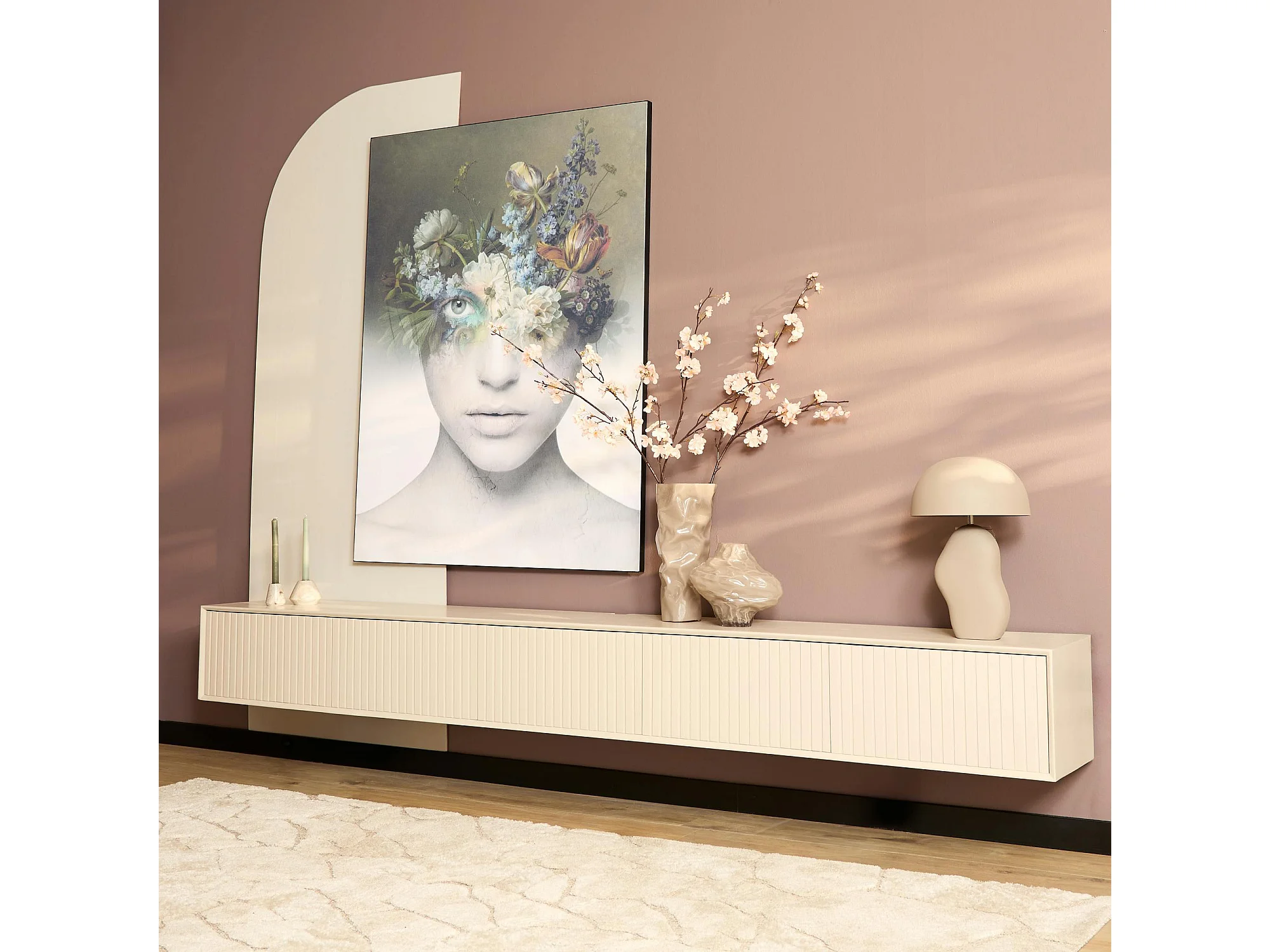 Meuble TV suspendu bois sable 5 portes rainurées CORTINA