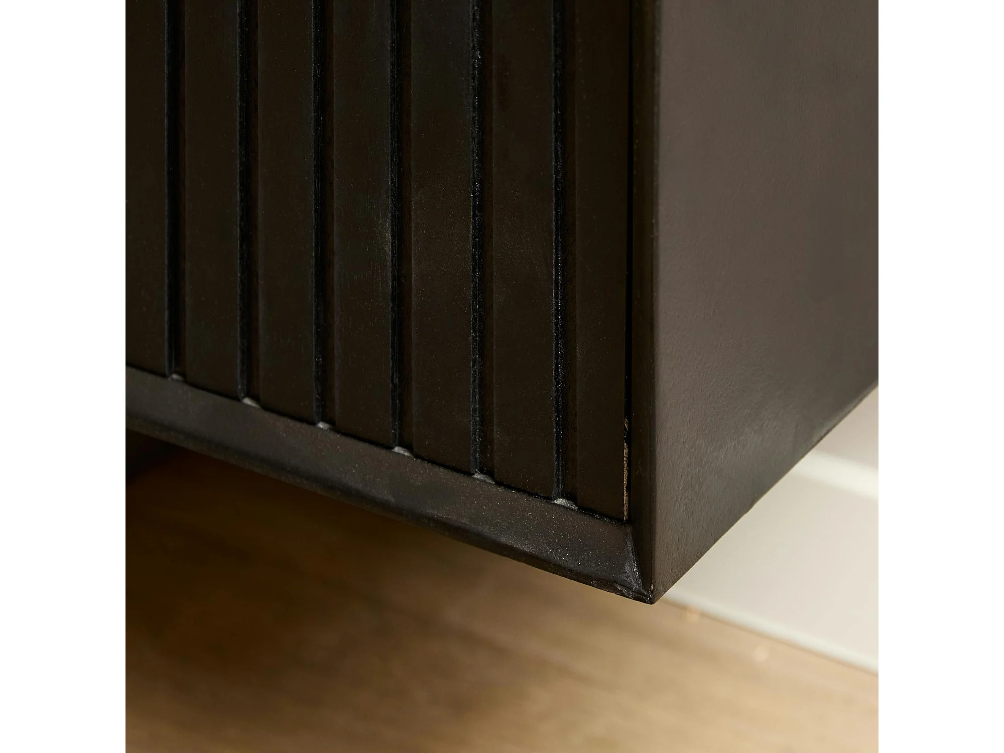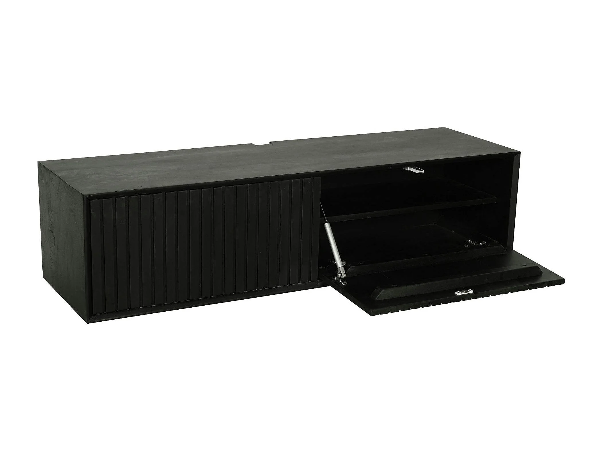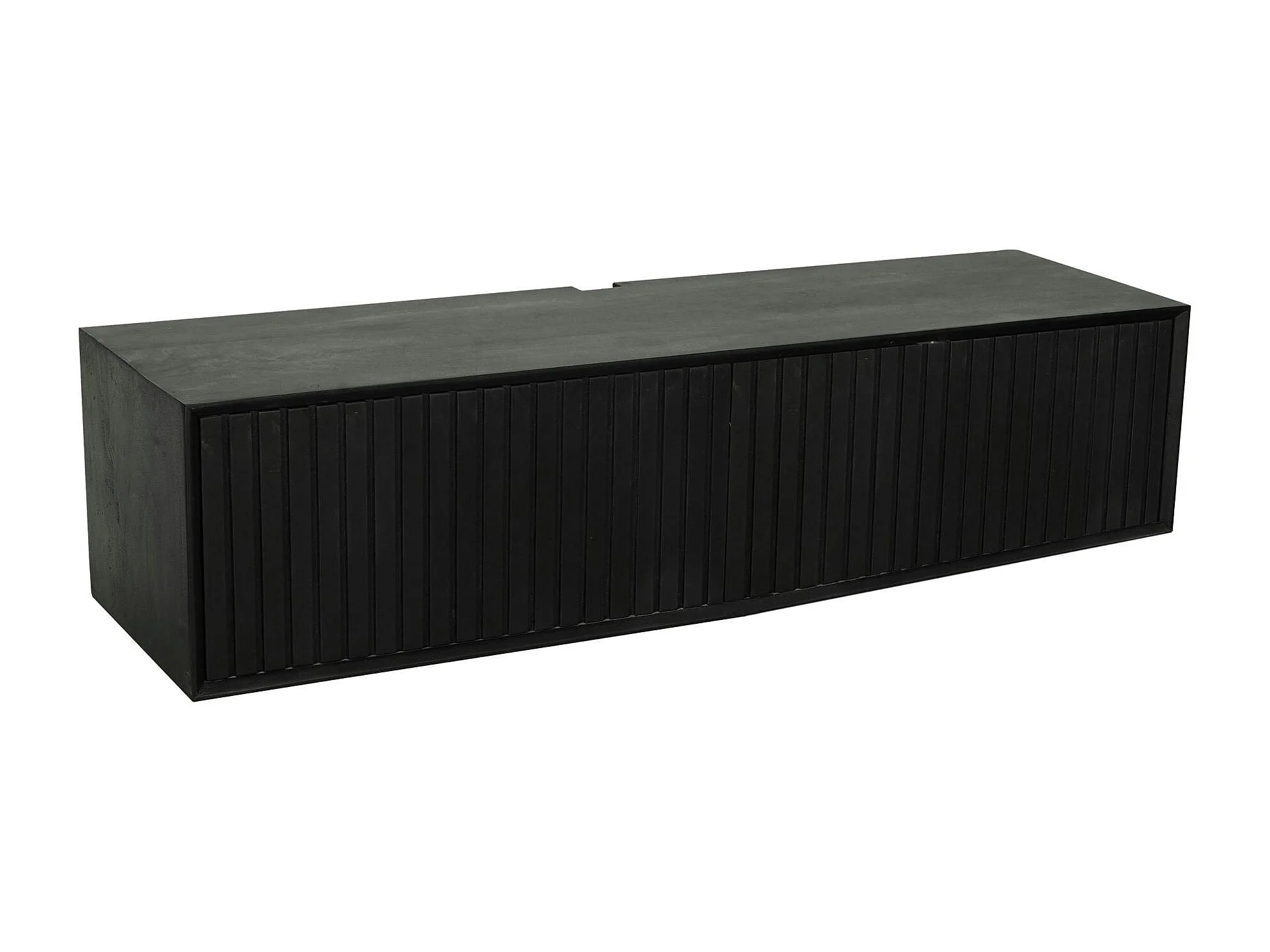 Meuble TV suspendu bois noir 2 portes rainurées CORTINA