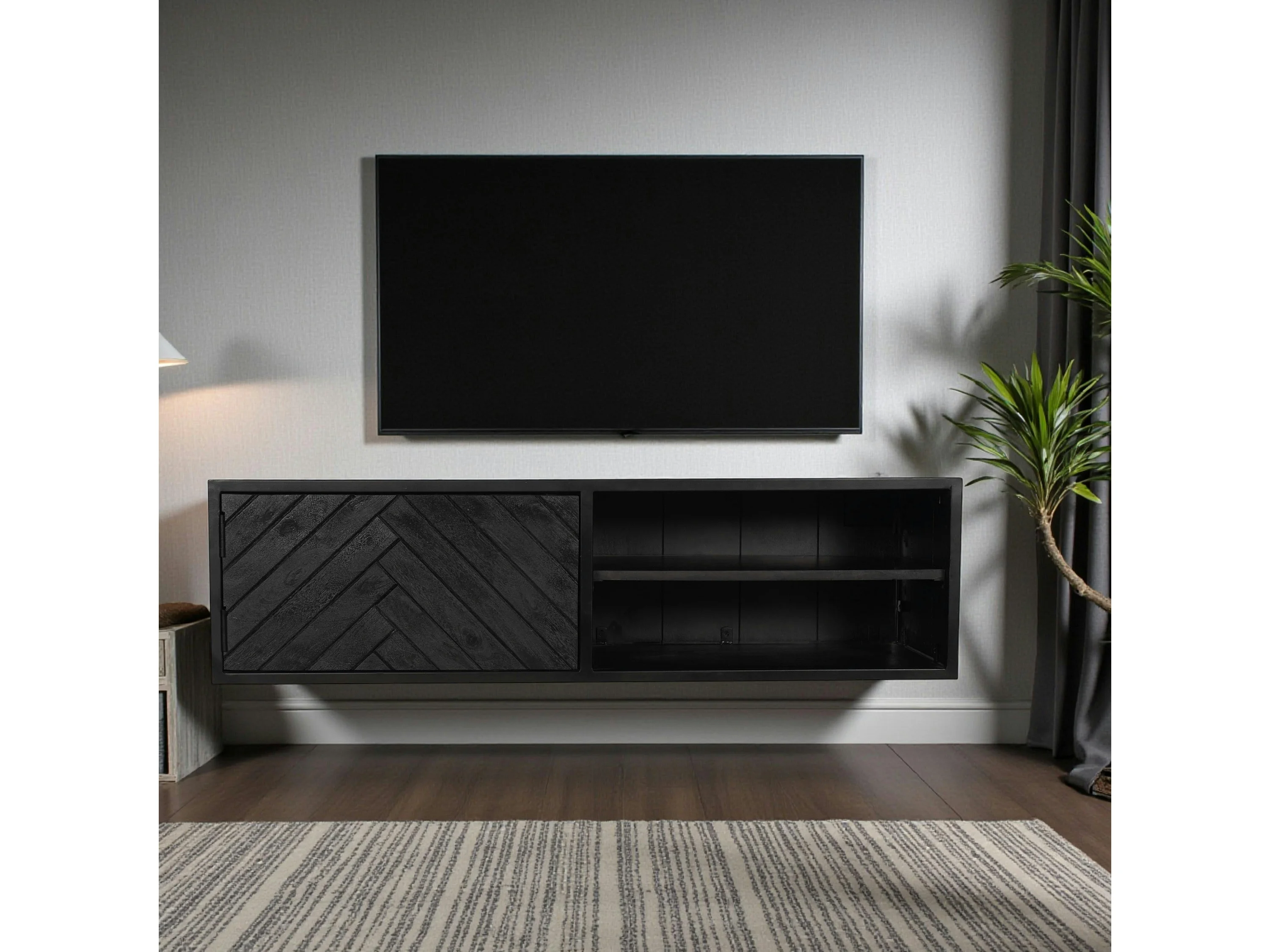 Meuble TV suspendu bois noir avec rangement 120 cm ALVERA