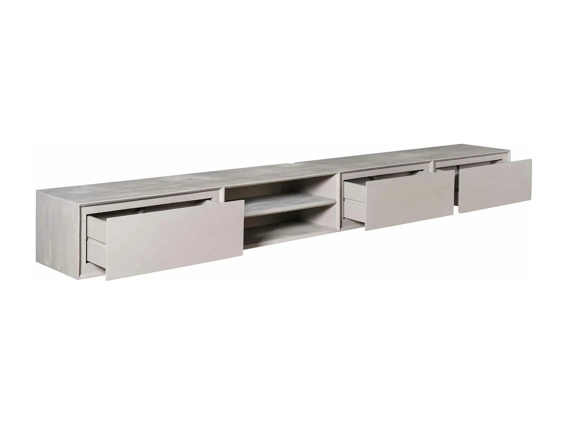 Meuble TV suspendu bois taupe 3 tiroirs 1 niche 200 cm AERA