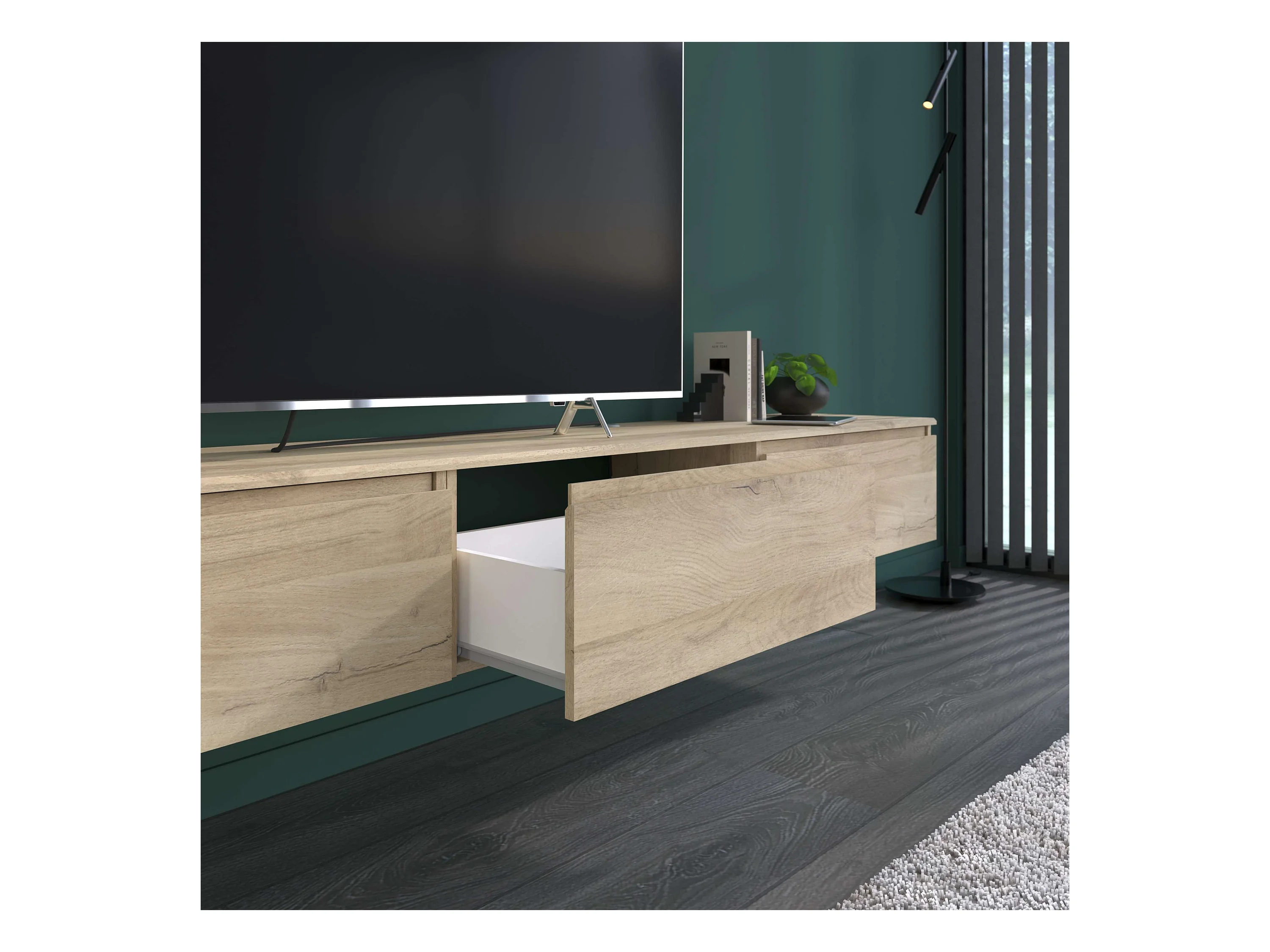Meuble TV suspendu Erebus, chêne Kronberg, mélaminé, 138 x 29 x 40 cm