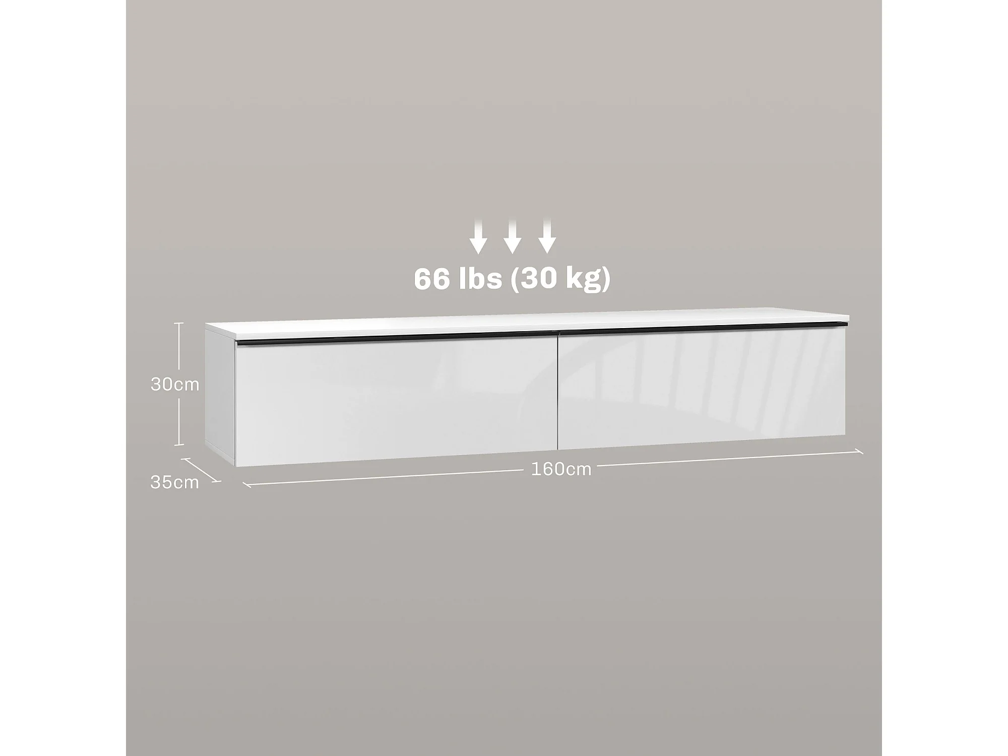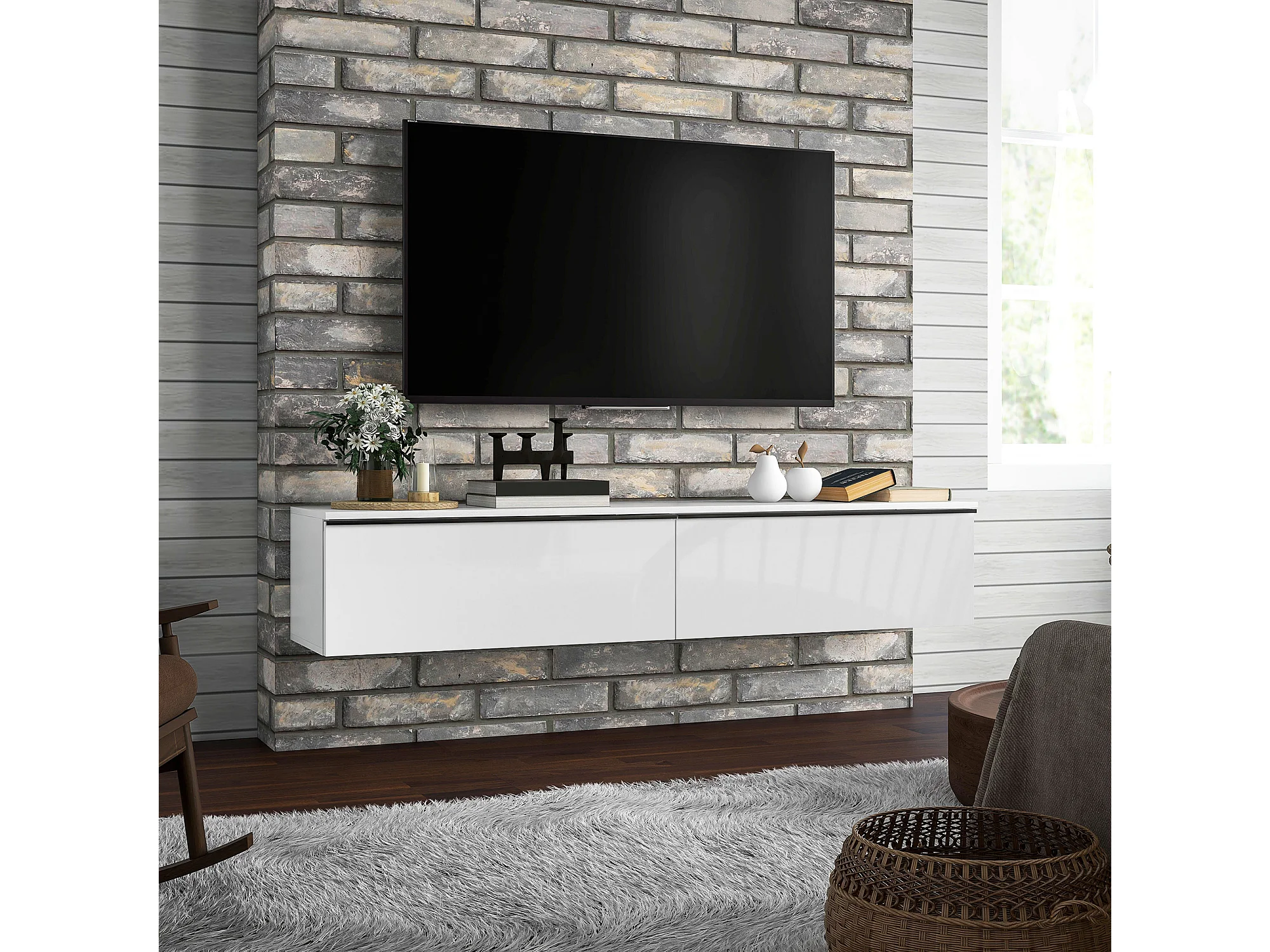 Meuble TV suspendu meuble TV flottant design façade blanc laqué 2 portes