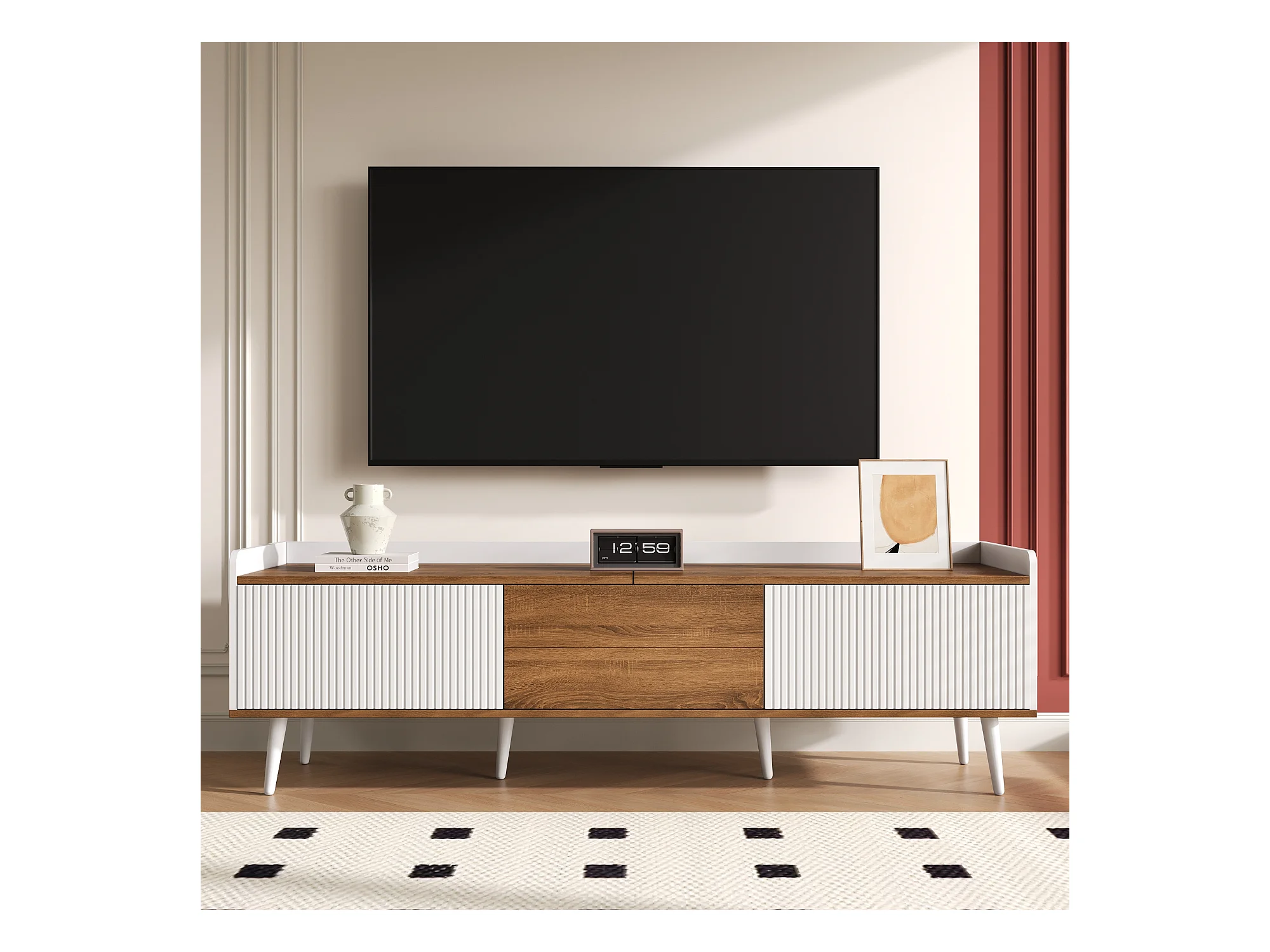Meuble TV moderne à blocs de couleurs, finition blanche, avec motif bois, 180 cm