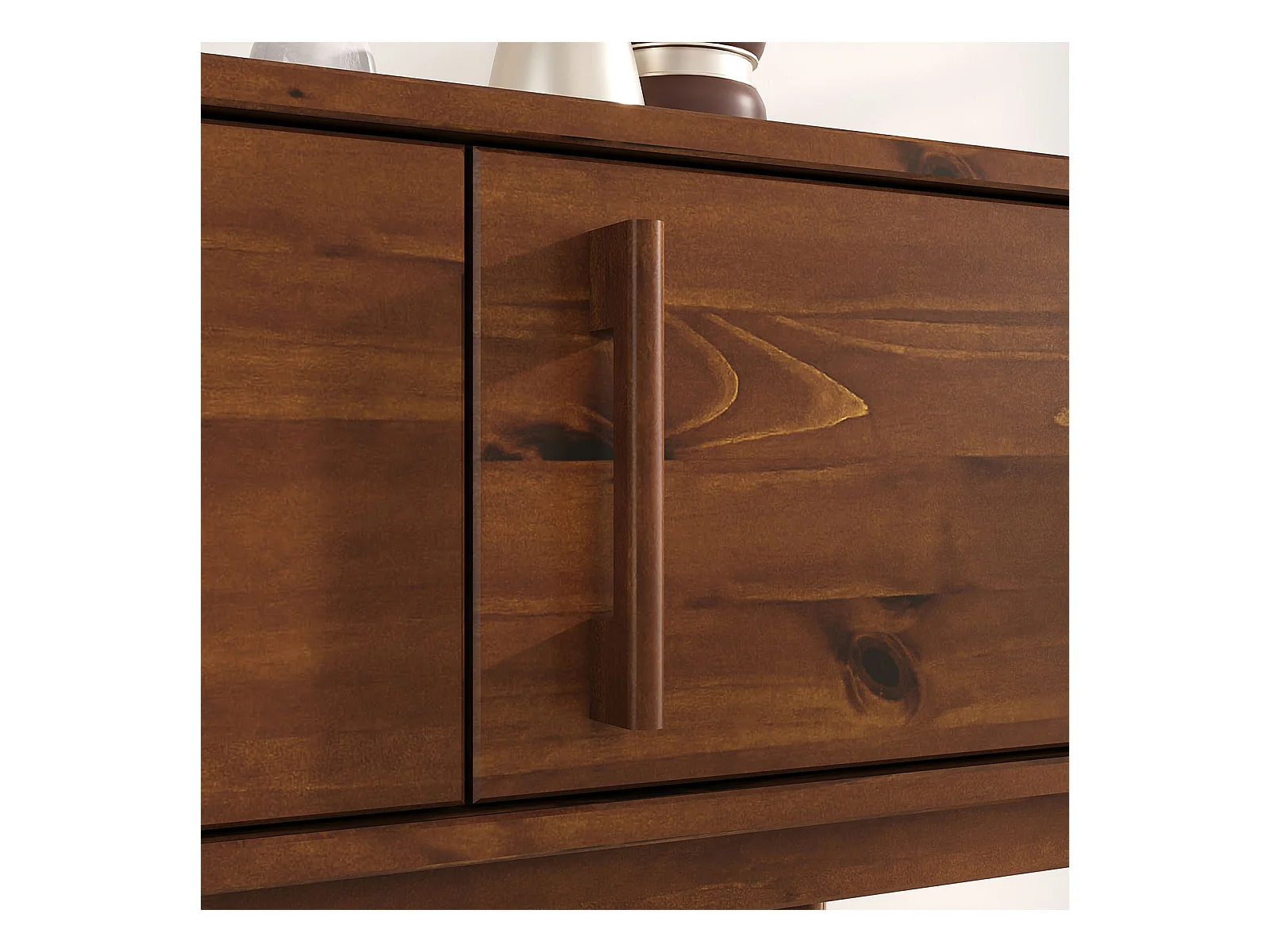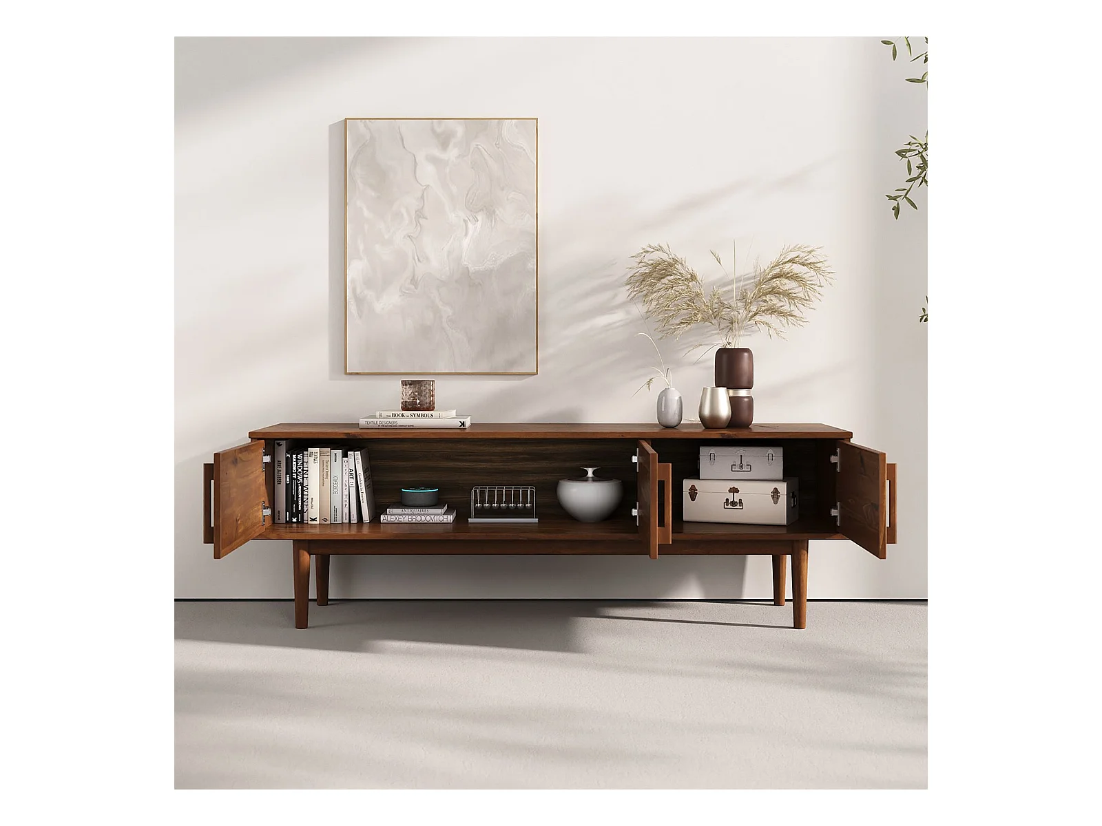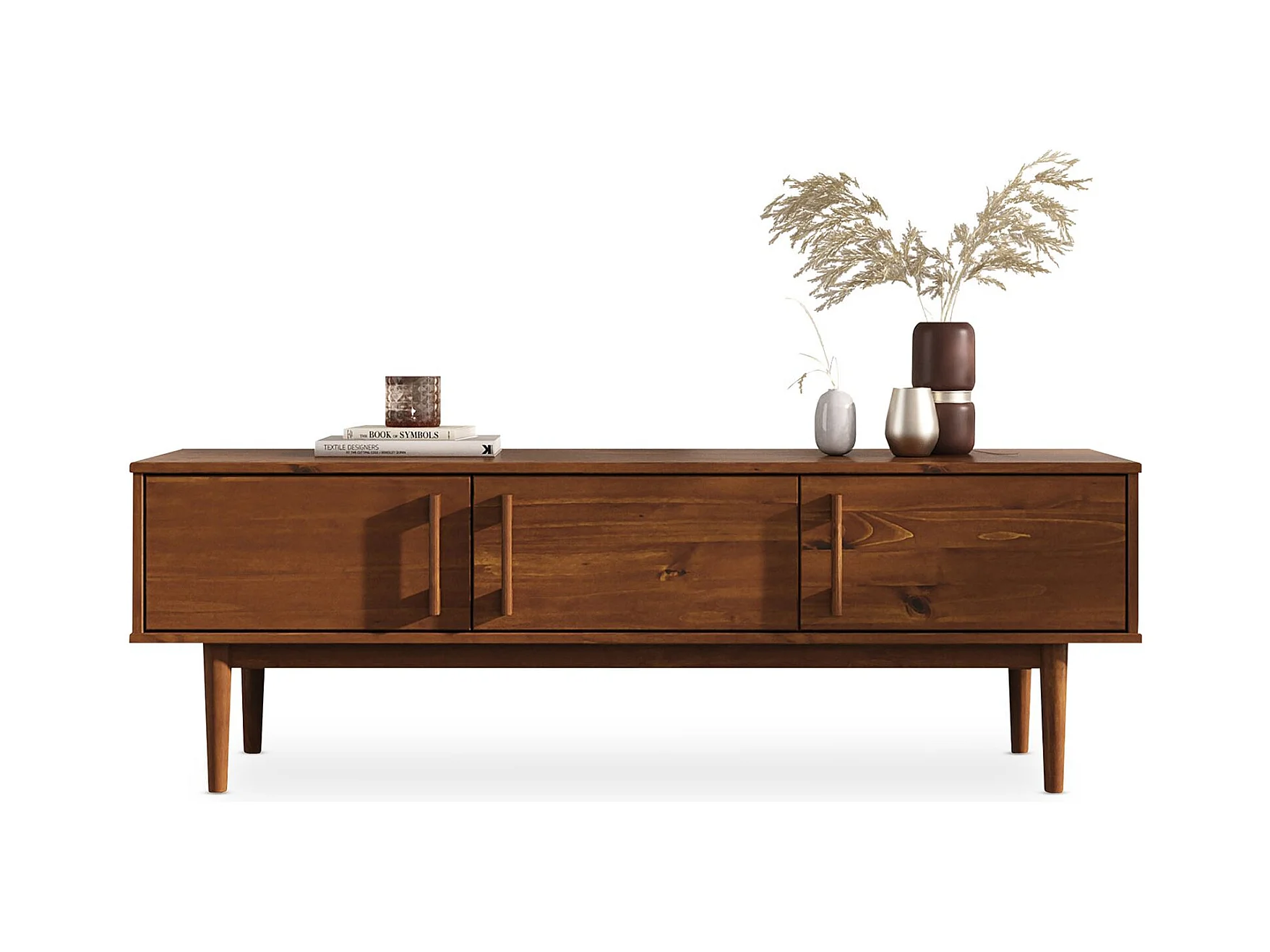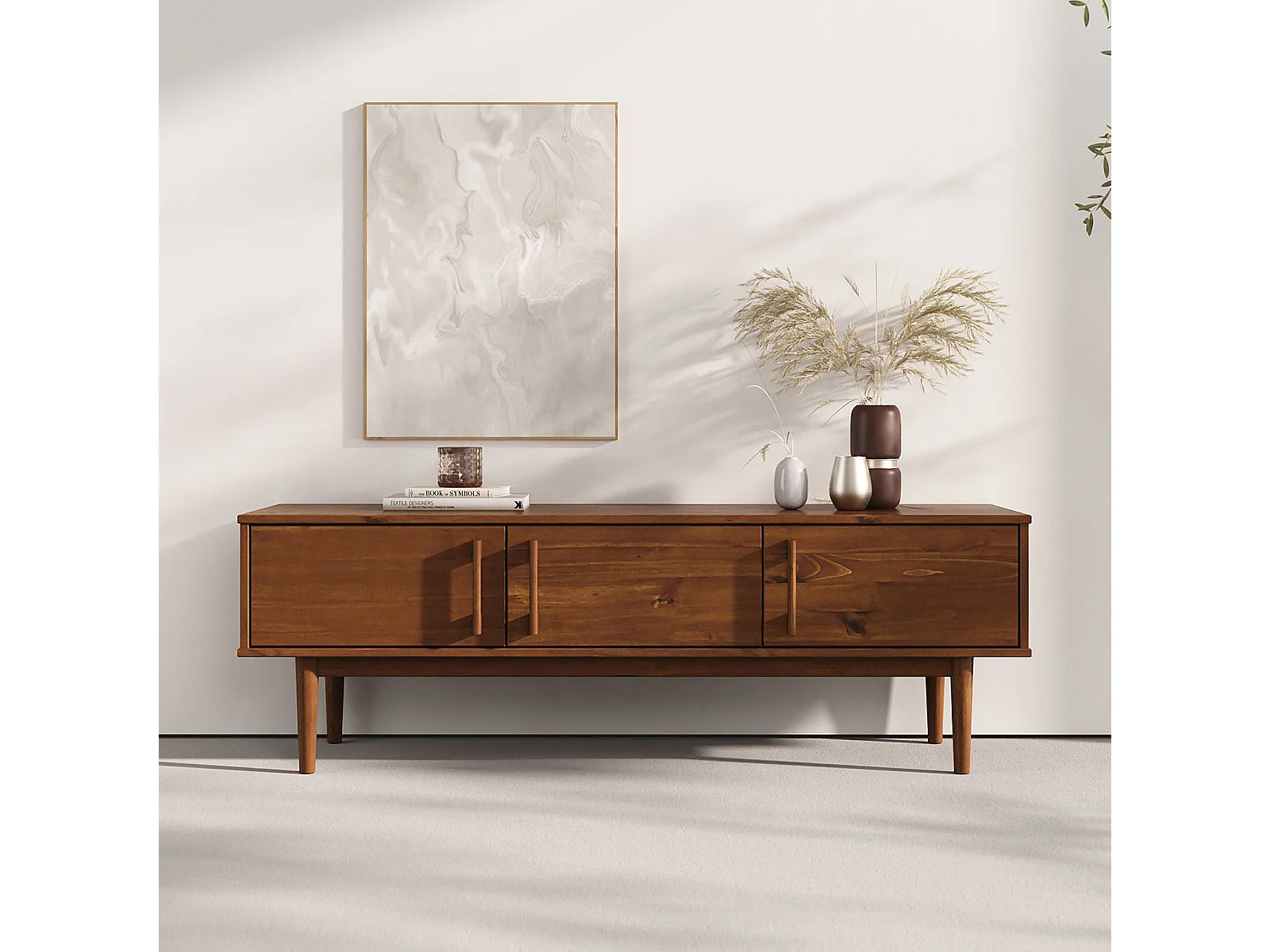 Meuble TV TECCA L 145 cm en Bois Massif Coloris Châtaignier avec 3 Portes, Pour Téléviseur jusqu'à 65", Meuble Télé Salon