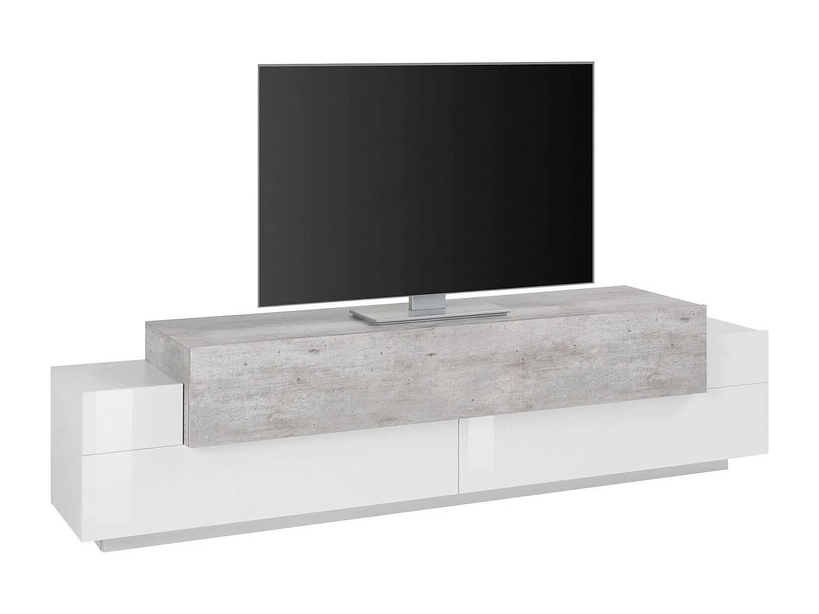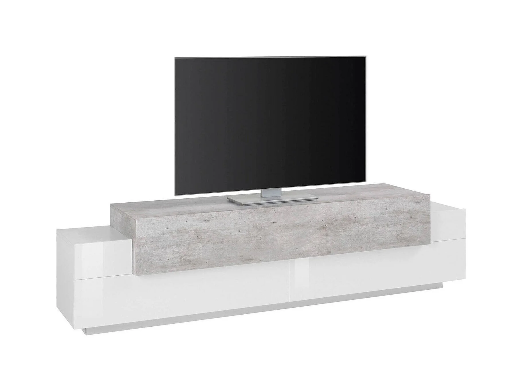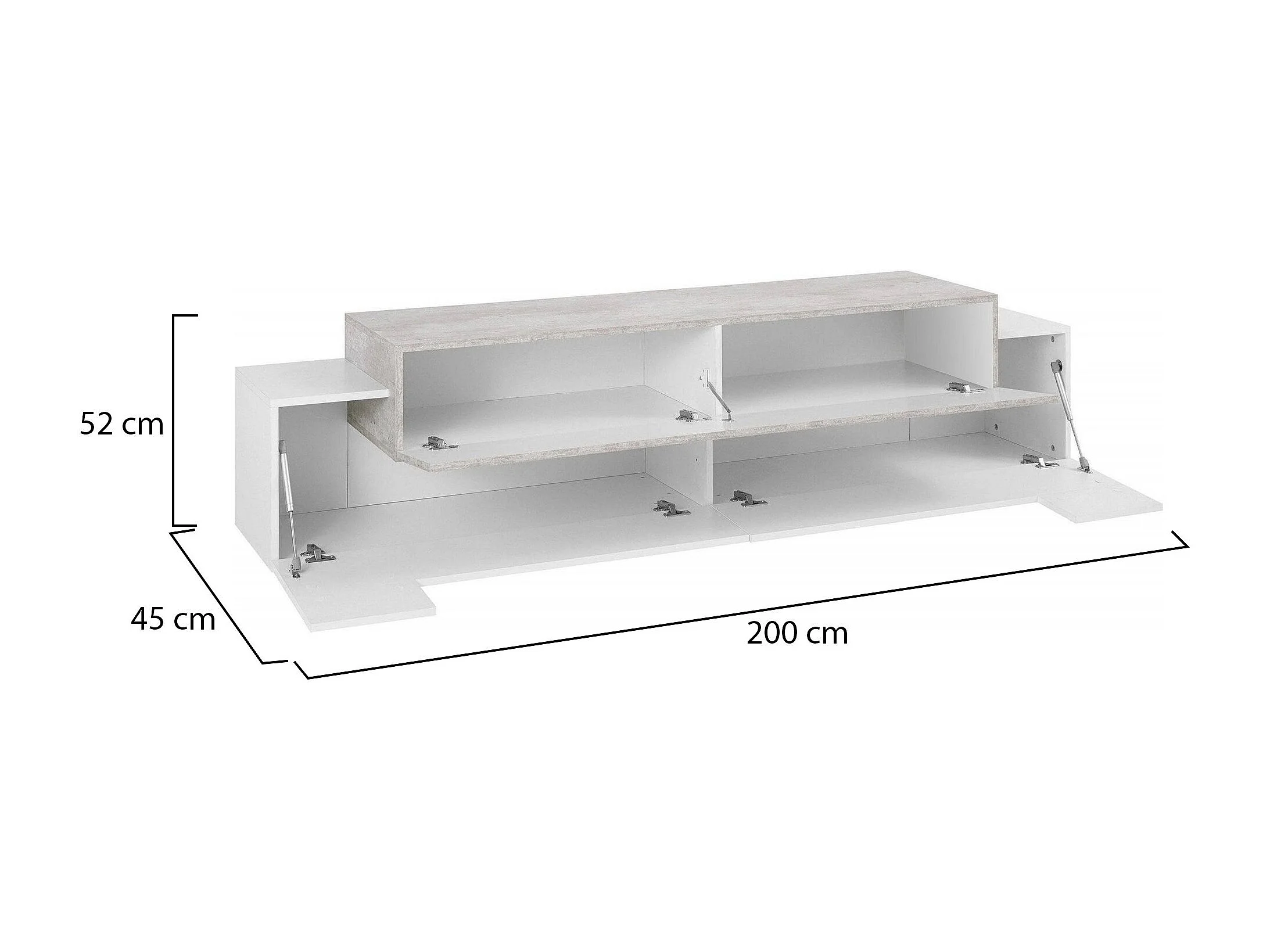Meuble TV Teo, Buffet bas de salon, Base pour meuble TV, 100% Made in Italy, 200x45h52 cm, Blanc brillant et ciment