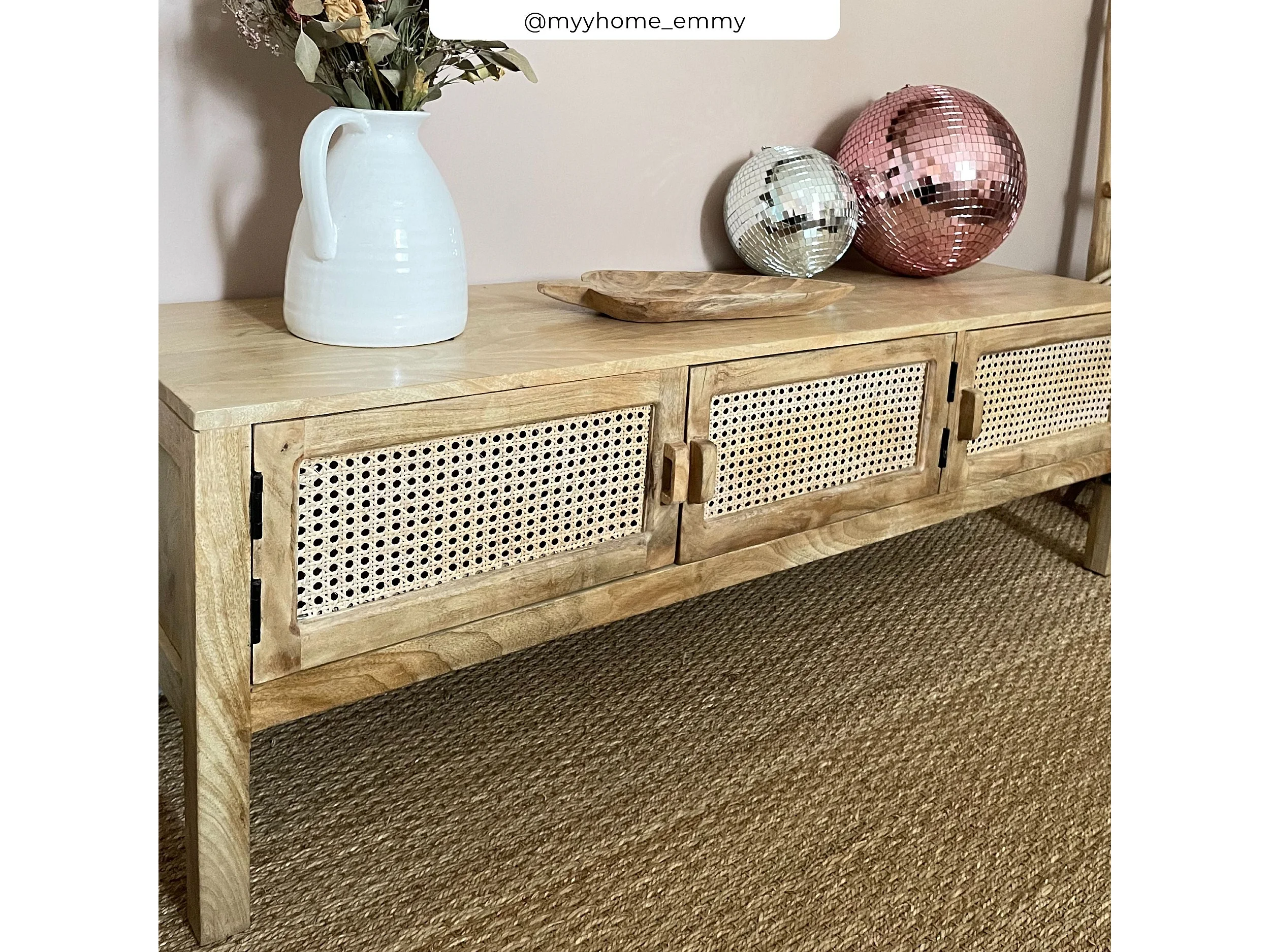 Meuble TV cannage et bois de manguier 140 cm - Tiki