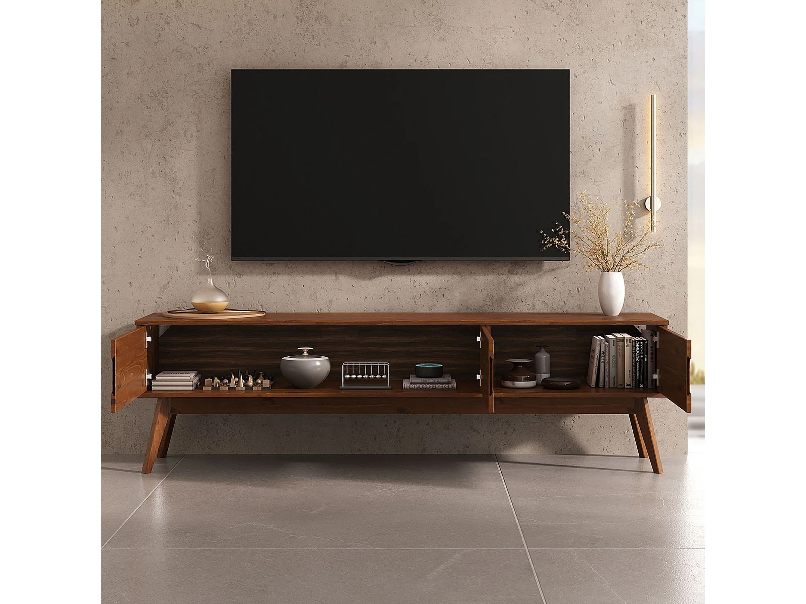 Meuble TV TIVOLI L 180 cm en Bois Massif Coloris Châtaignier avec 3 Portes Pour Télé Jusqu'à 80"