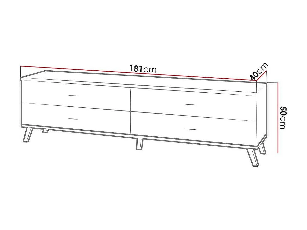 Meuble TV Talsere 105, Chêne de Lefkas|Noir, Nombre de tiroirs: 4, 181x50x40cm