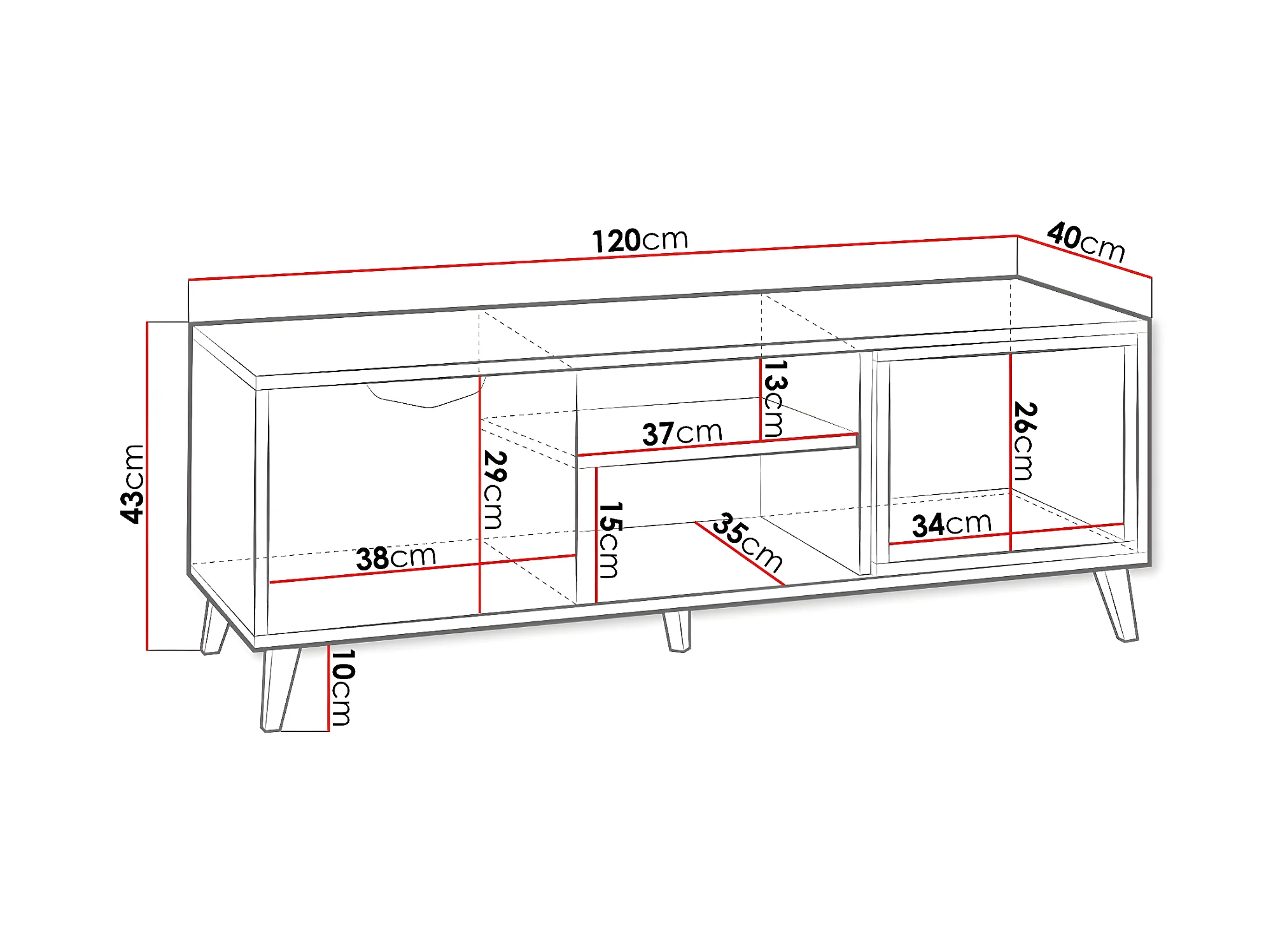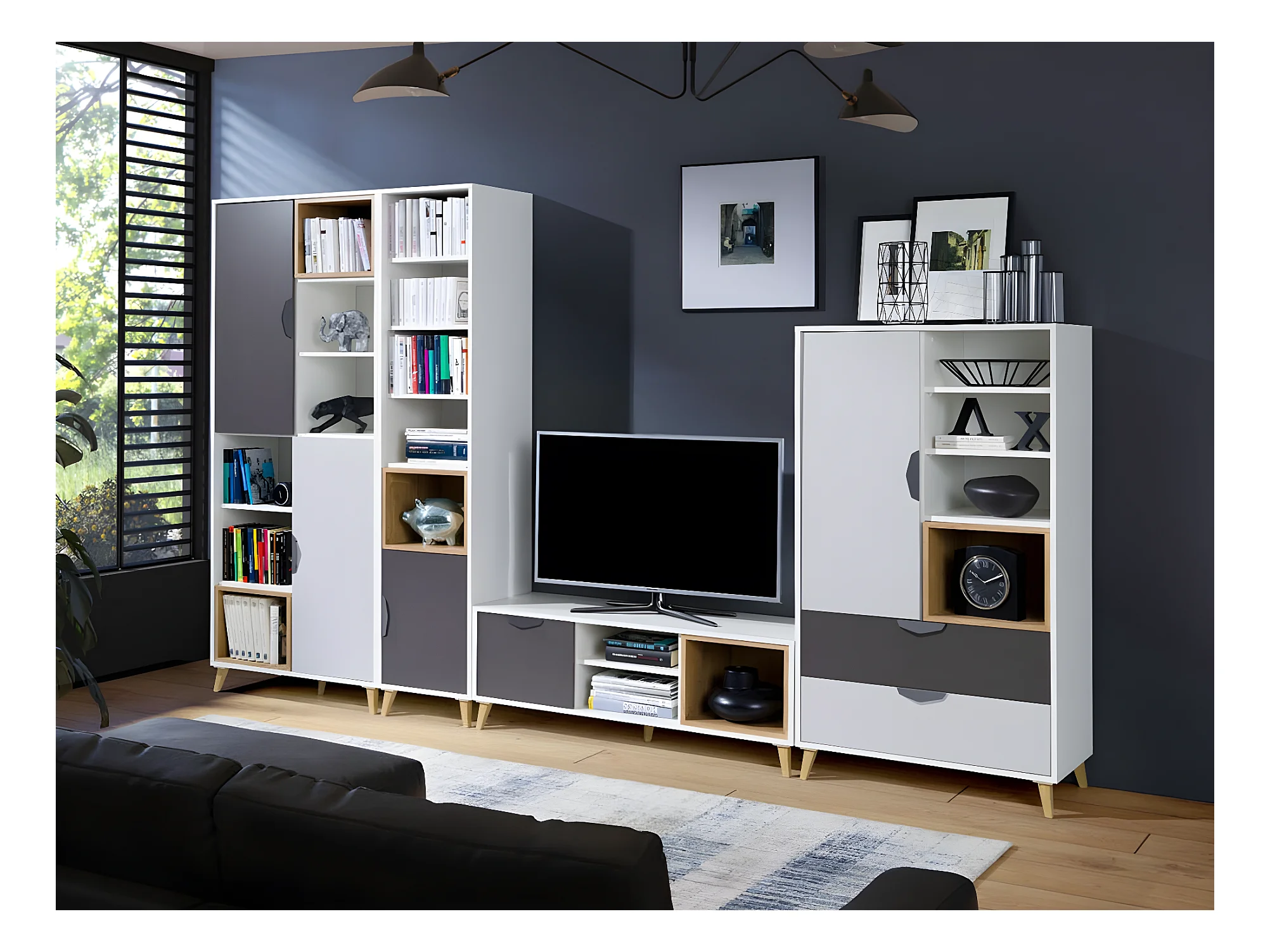 Meuble TV Domvera 109, Graphite|Blanc|Chêne de Lefkas, Le nombre de portes: 1, 120x43cm