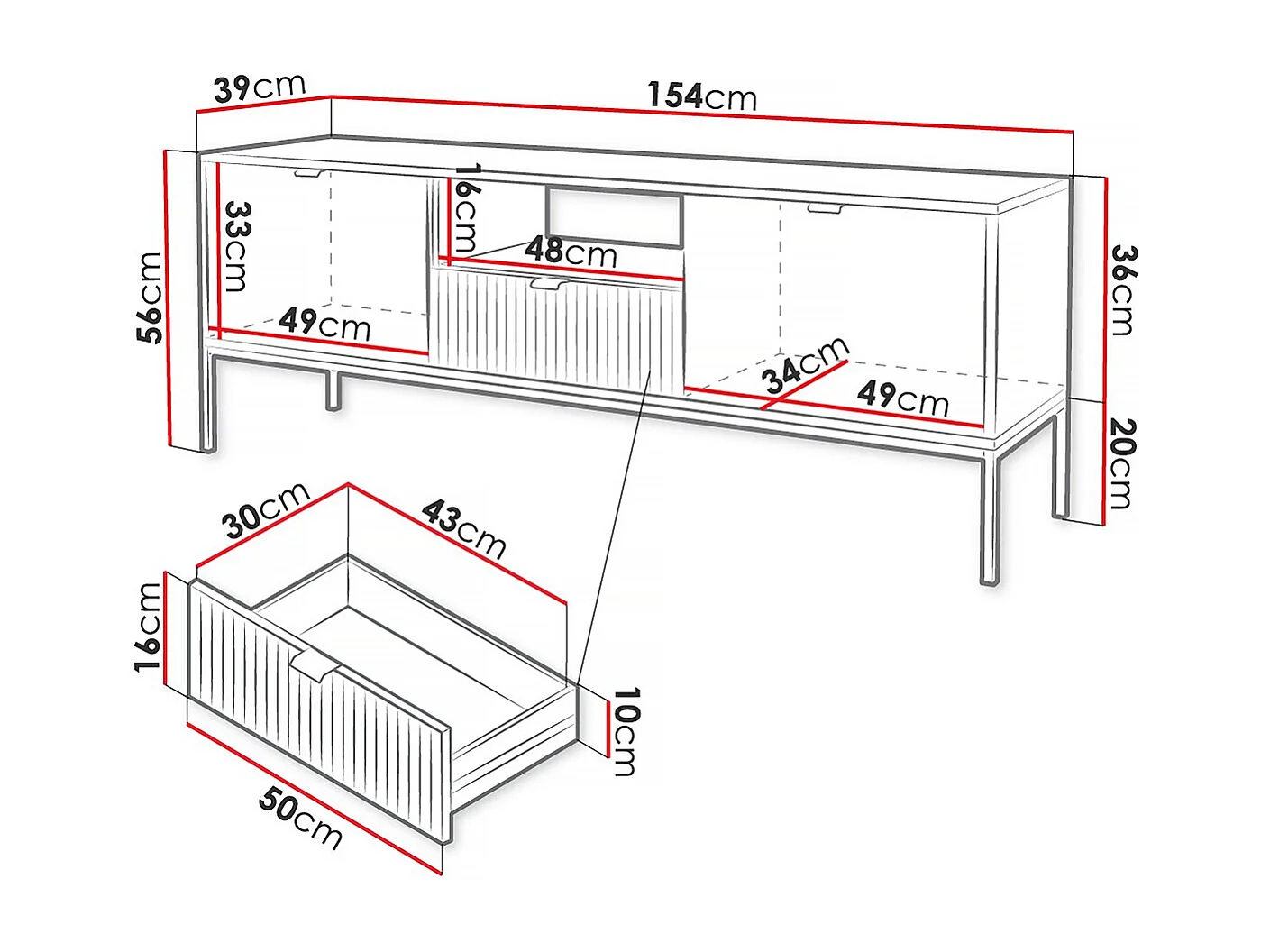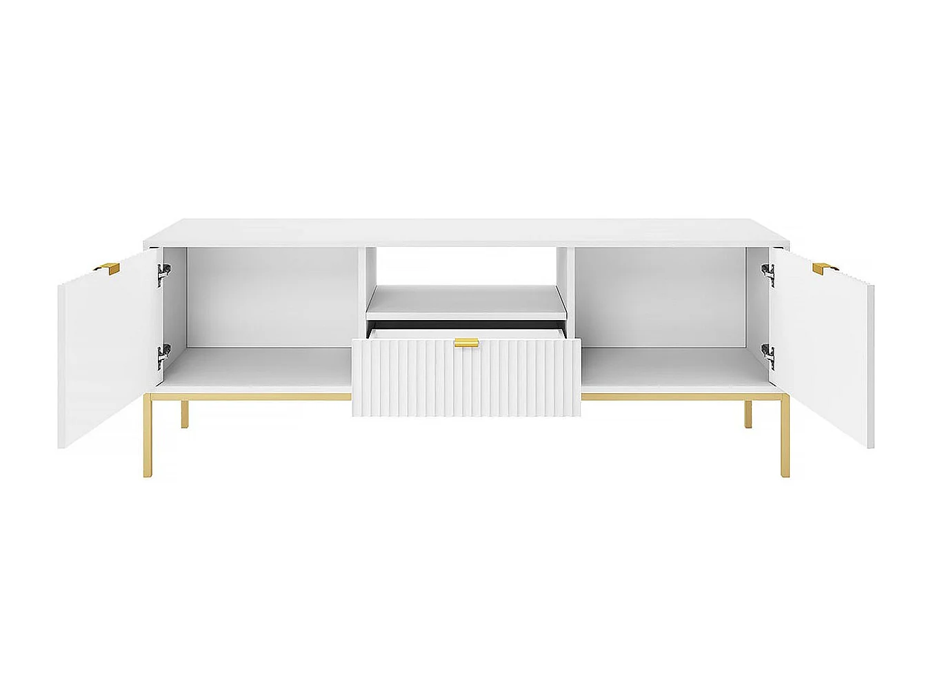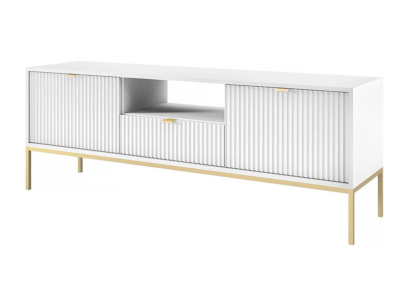 Meuble tv "Tunis" - 154 x 56 x 39 cm - Blanc - Rainuré