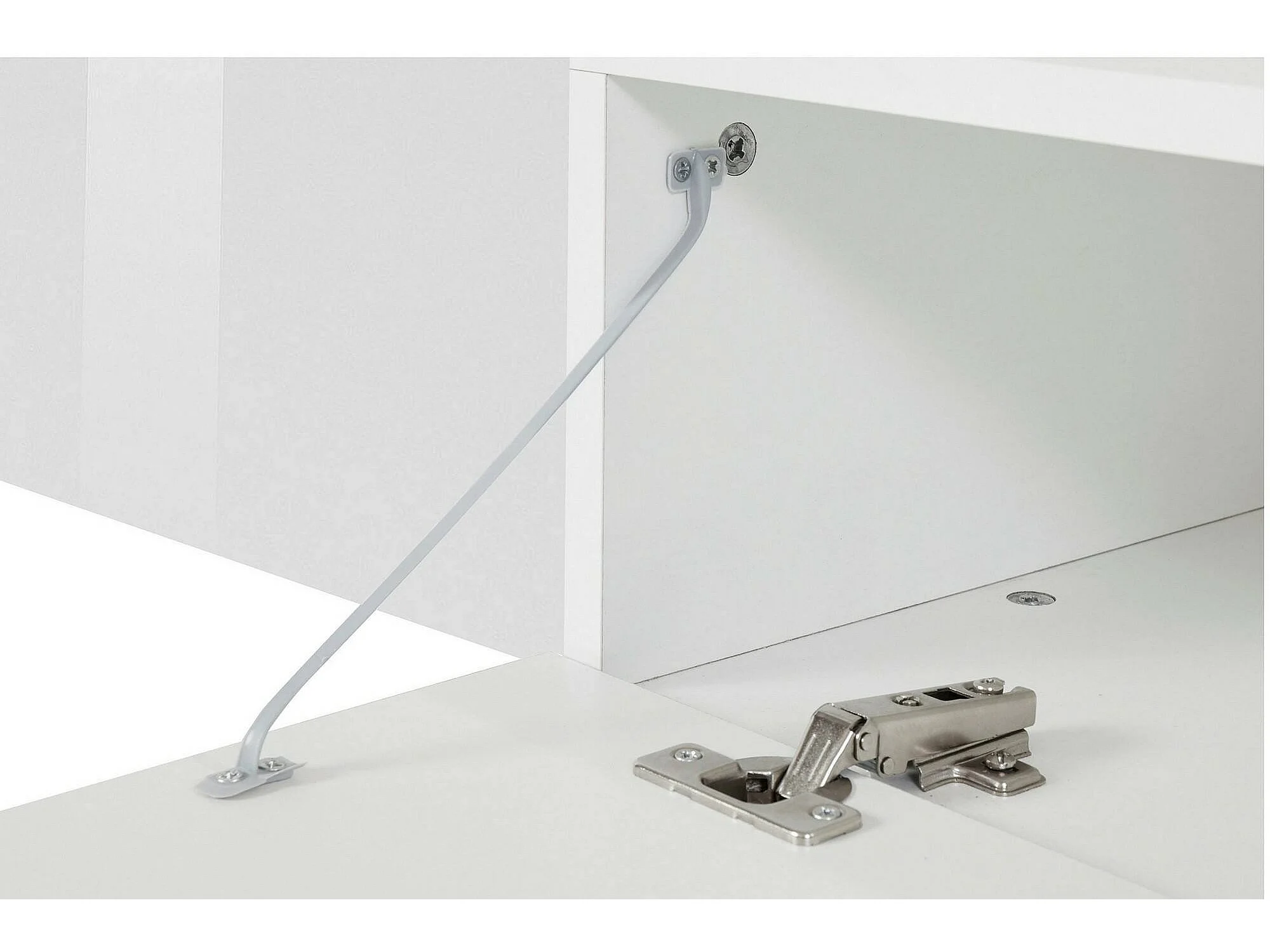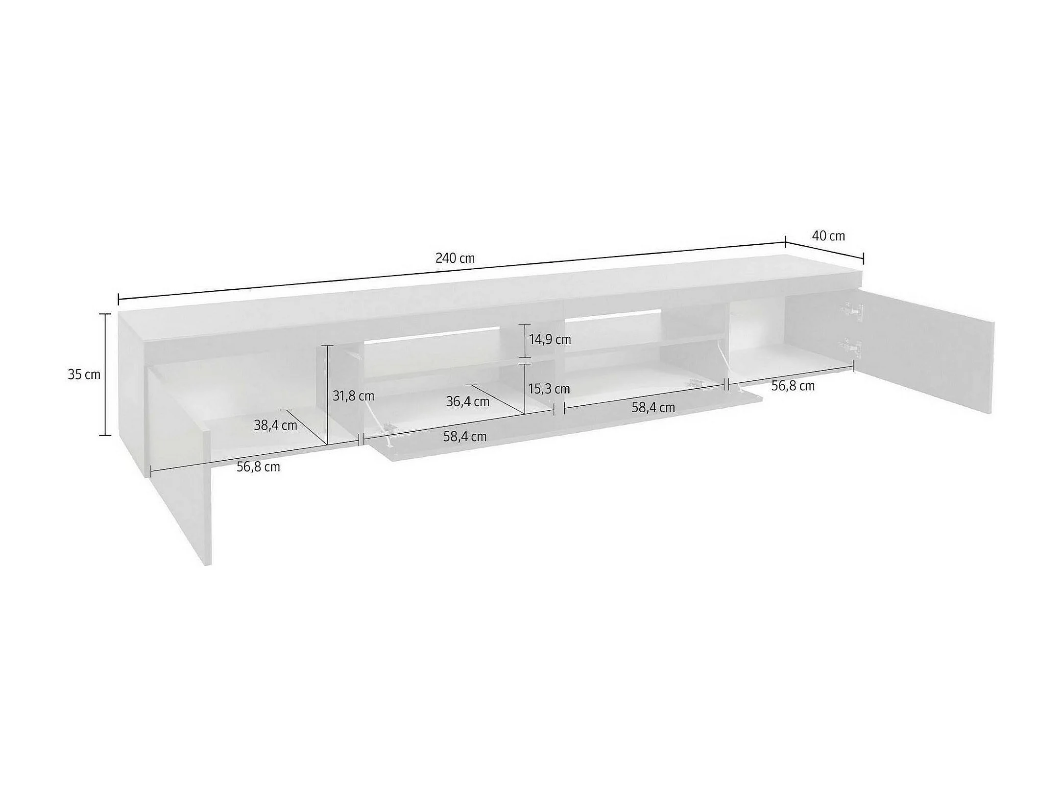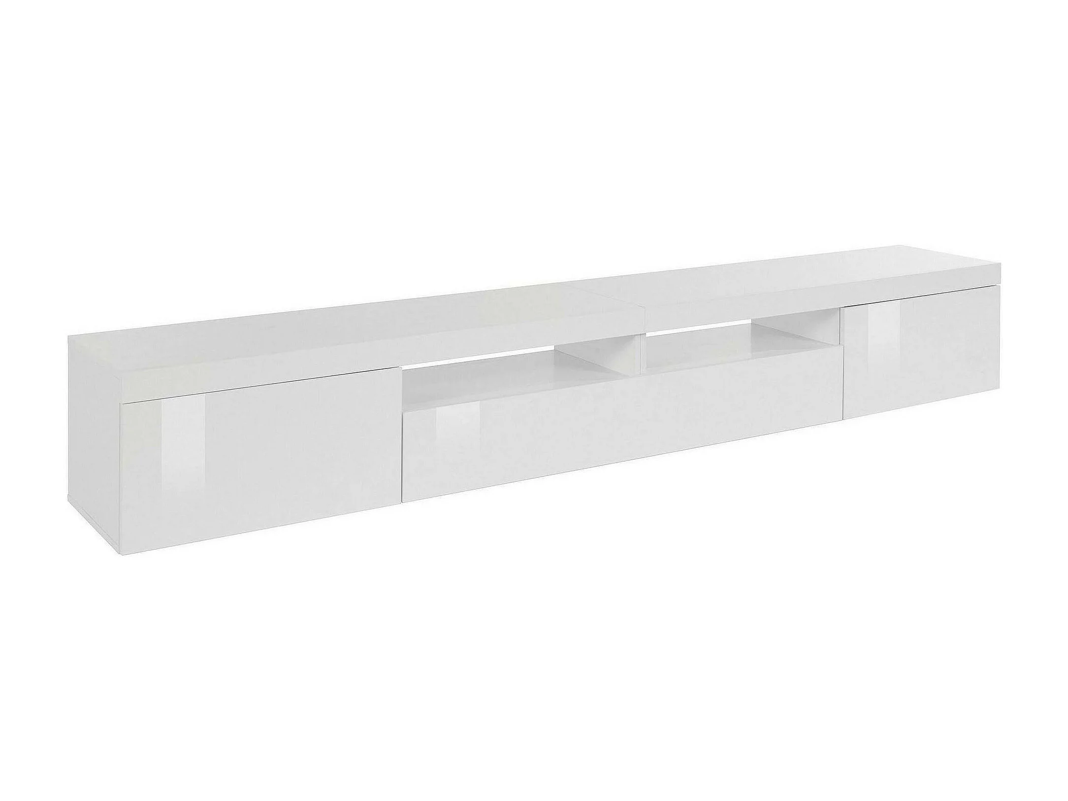 Meuble TV Ulisse, Buffet bas de salon avec 3 portes, Base meuble TV, 240x40h35 cm, Blanc brillant
