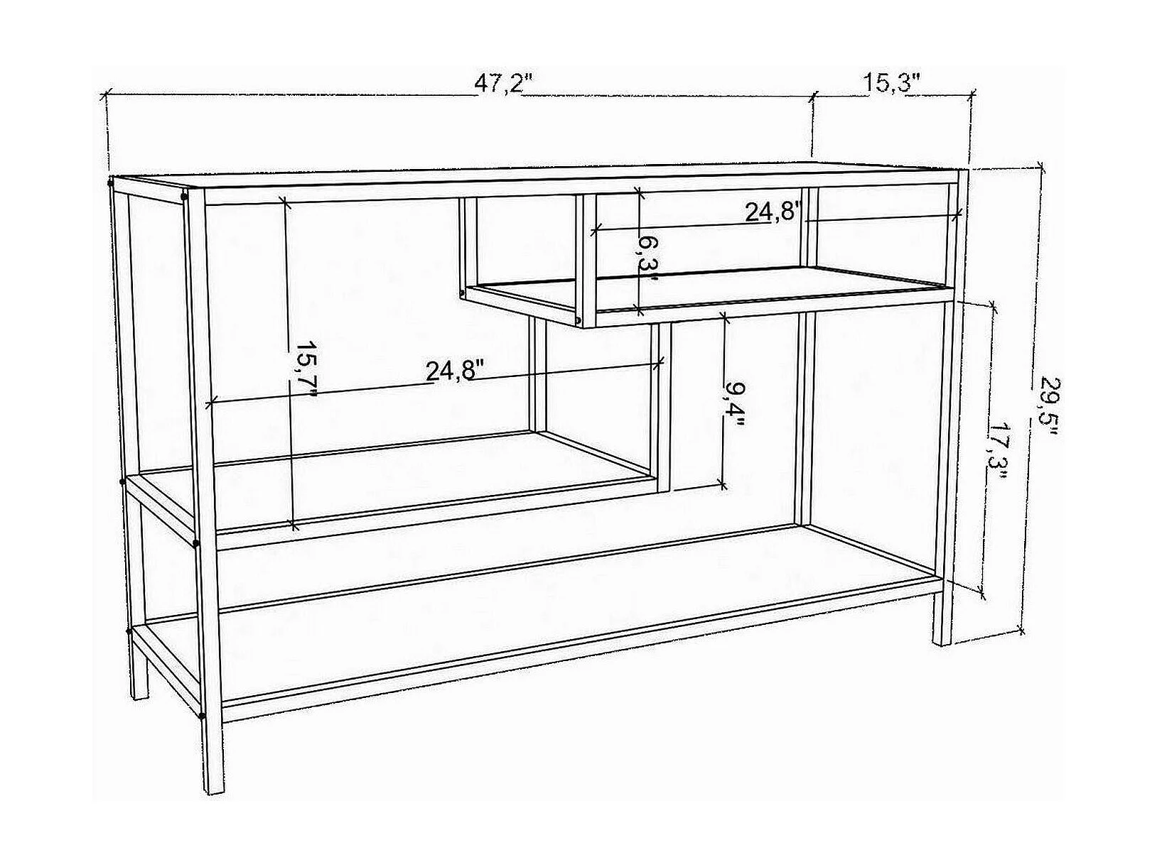 Meuble TV Vega, Buffet de salon, Armoire basse pour TV, Base murale de rangement, 120x39h75 cm, Blanc et anthracite