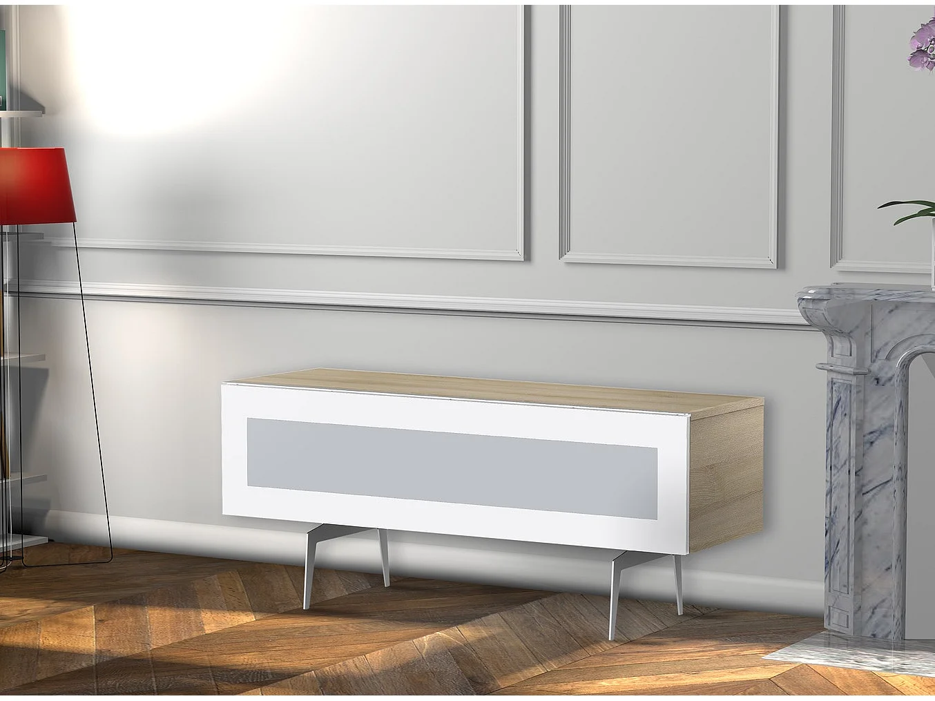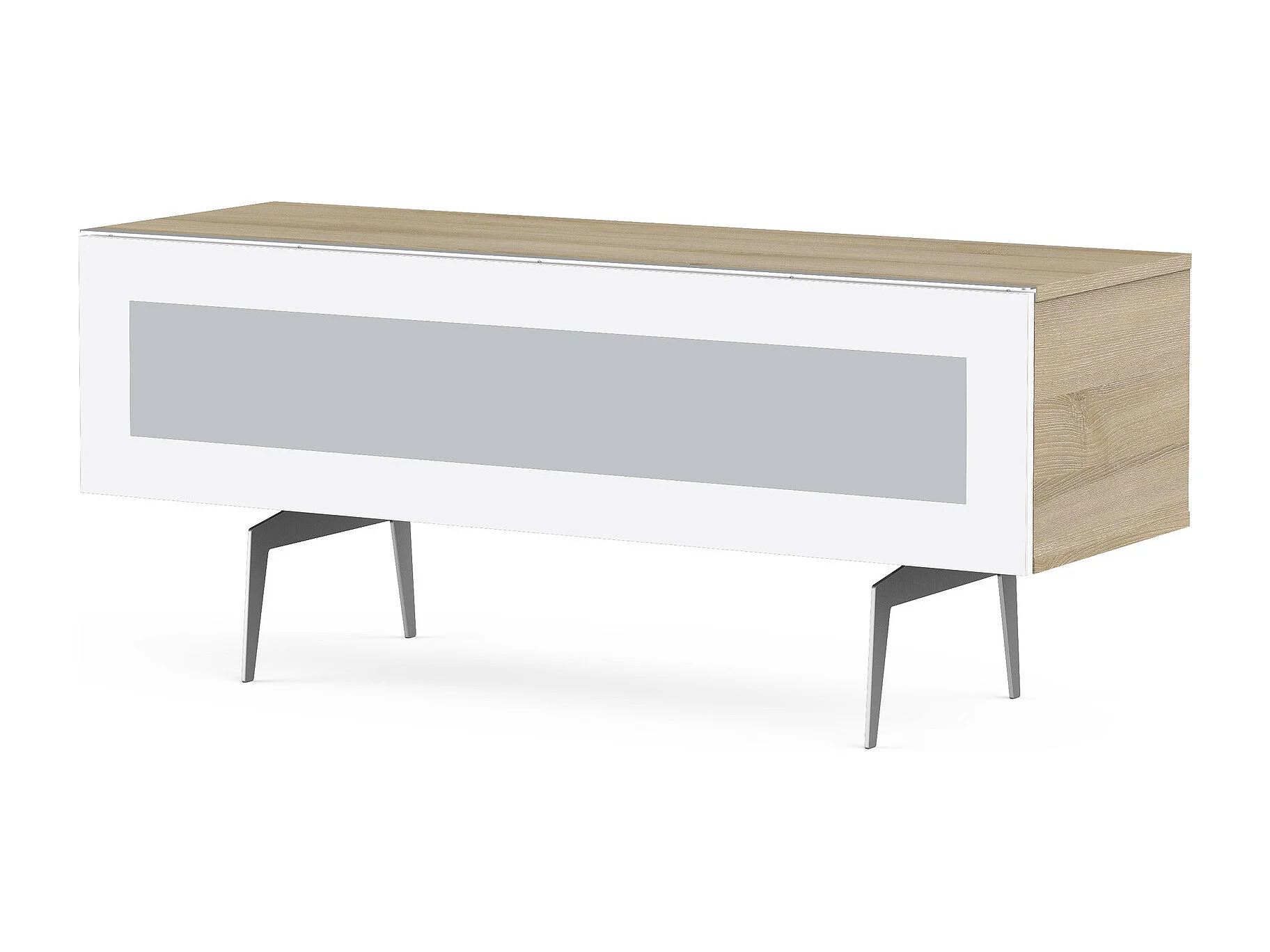 Meuble TV verre infrarouge et bois clair pied métal Brisbane 120cm