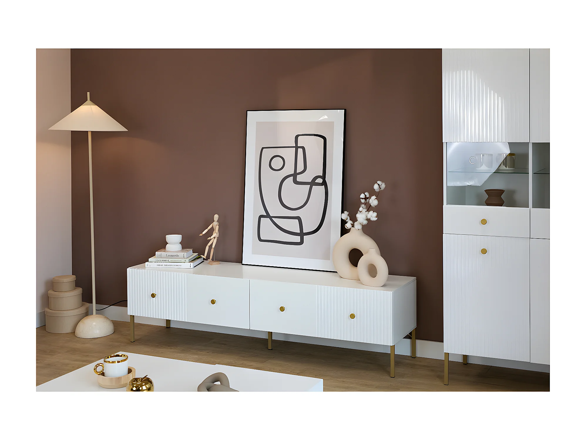 MEUBLE TV VIENA - 180 CM - 2 portes Blanc - Doré