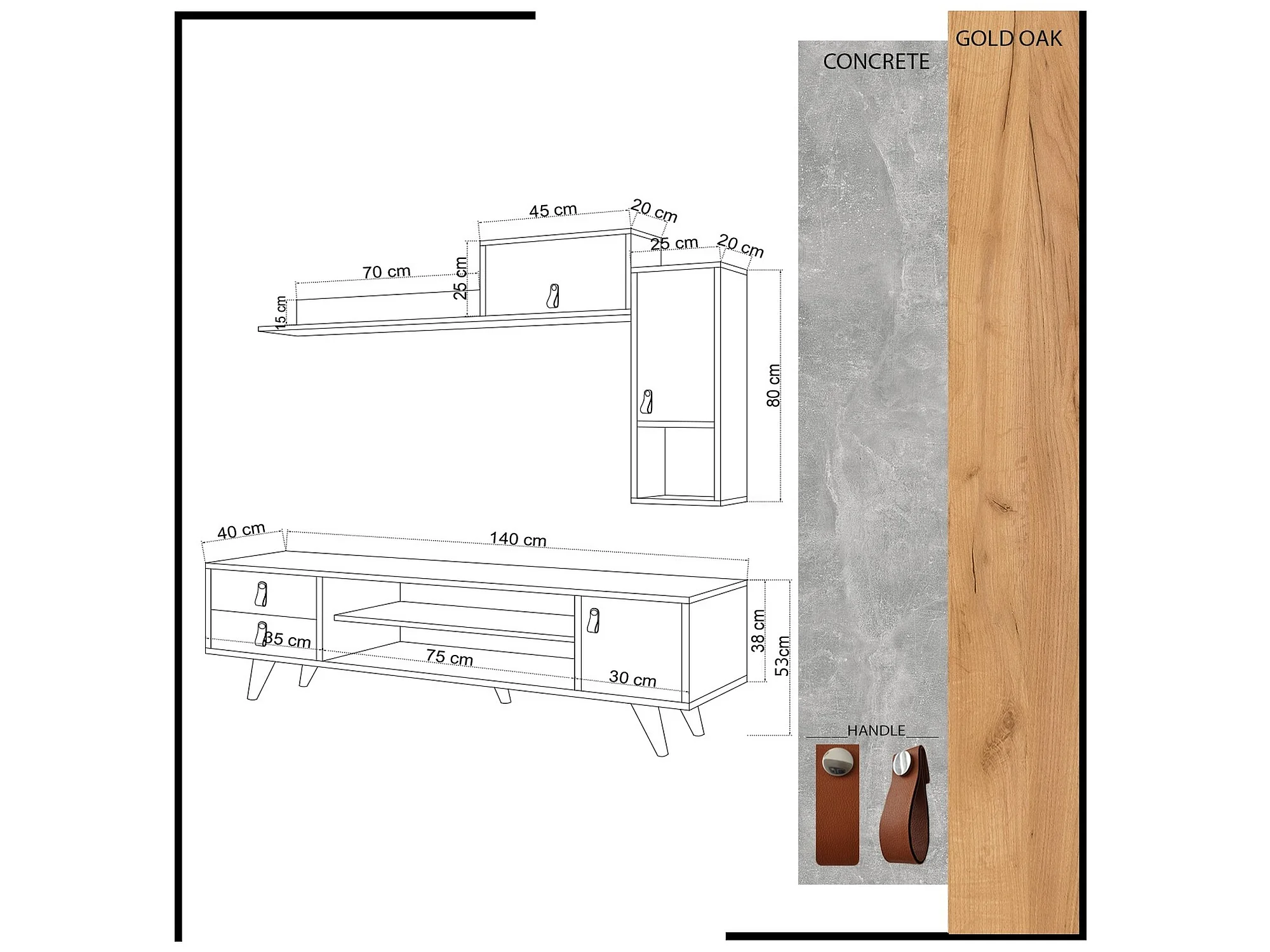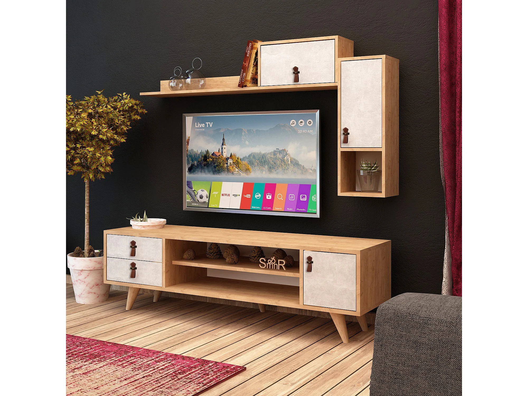 Meuble tv yukon design 100 % panneau de particules plaqué mélaminé en couleur chêne blanc, 140x80x15cm