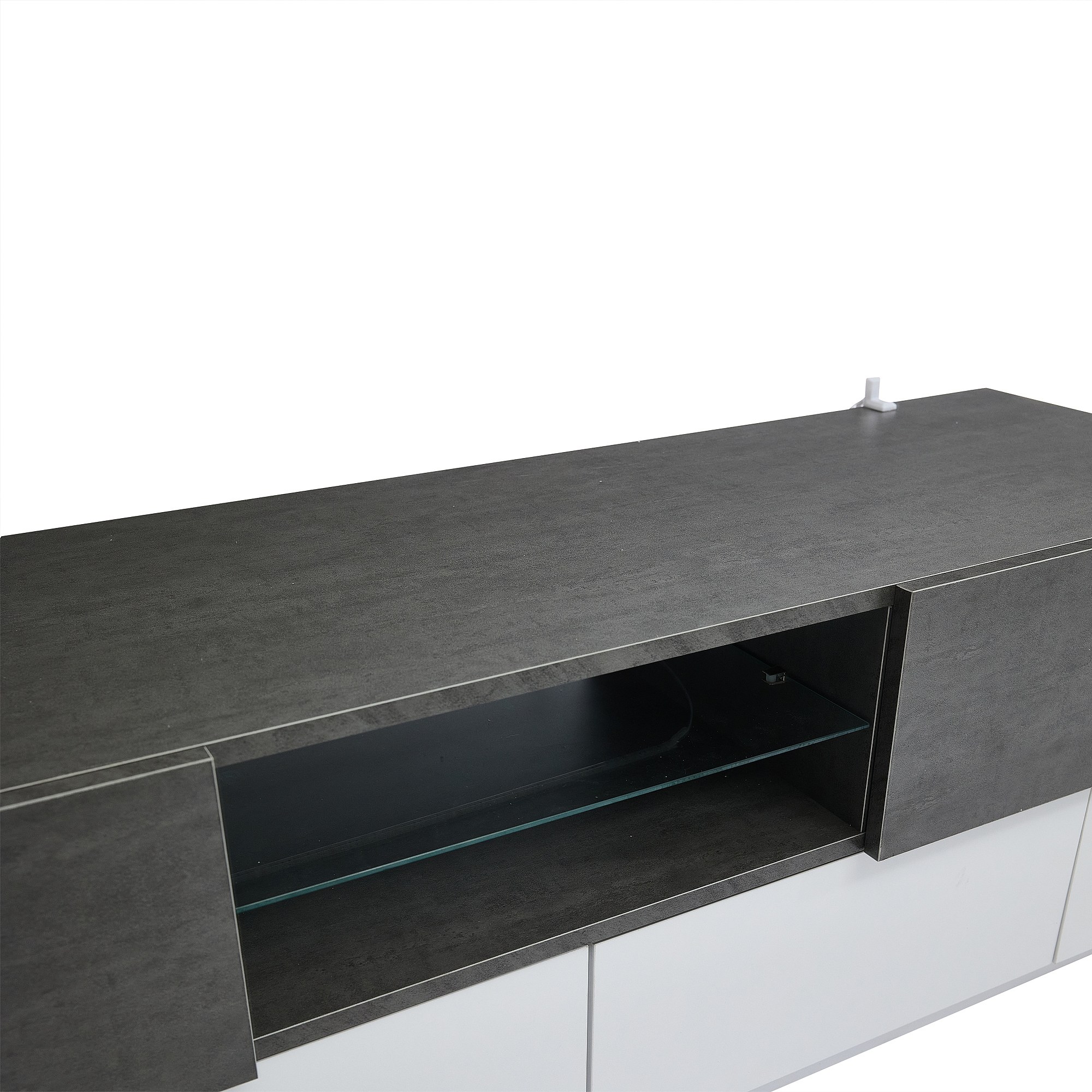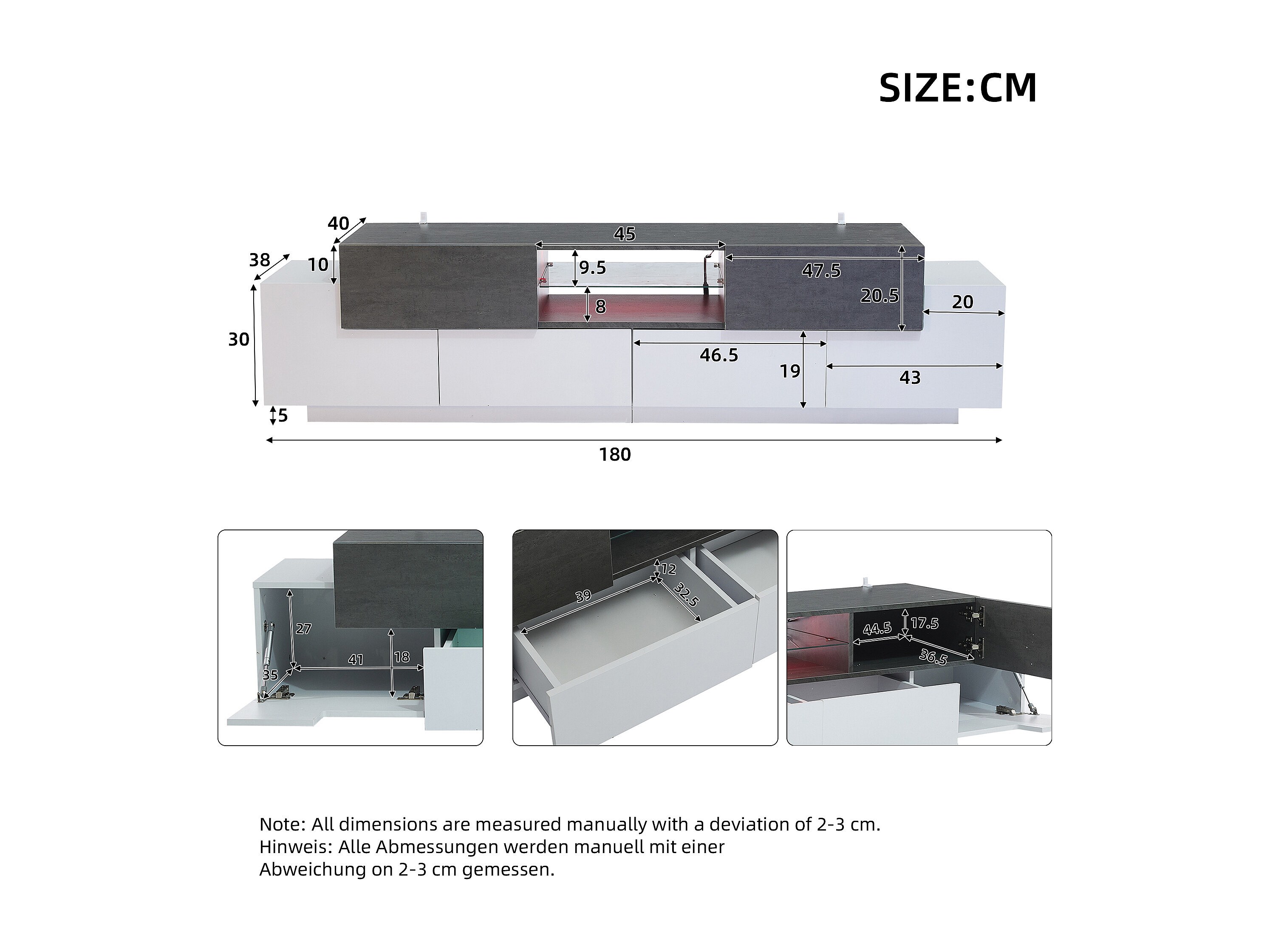 Meuble TV180x40x45cm - avec LED - avec 2 tiroirs et 4 portes - pour téléviseurs 80/75/70/65/55 pouces - blanc + gris