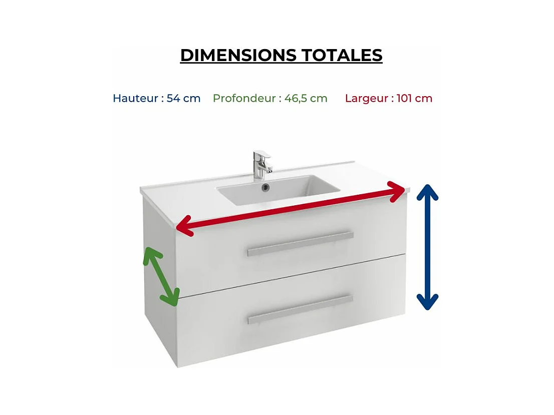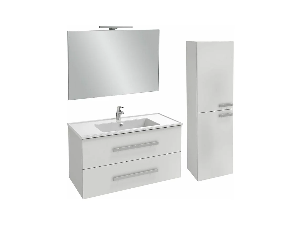 Pack meuble vasque 100 cm JACOB DELAFON Ola up blanc + colonne + miroir + spot