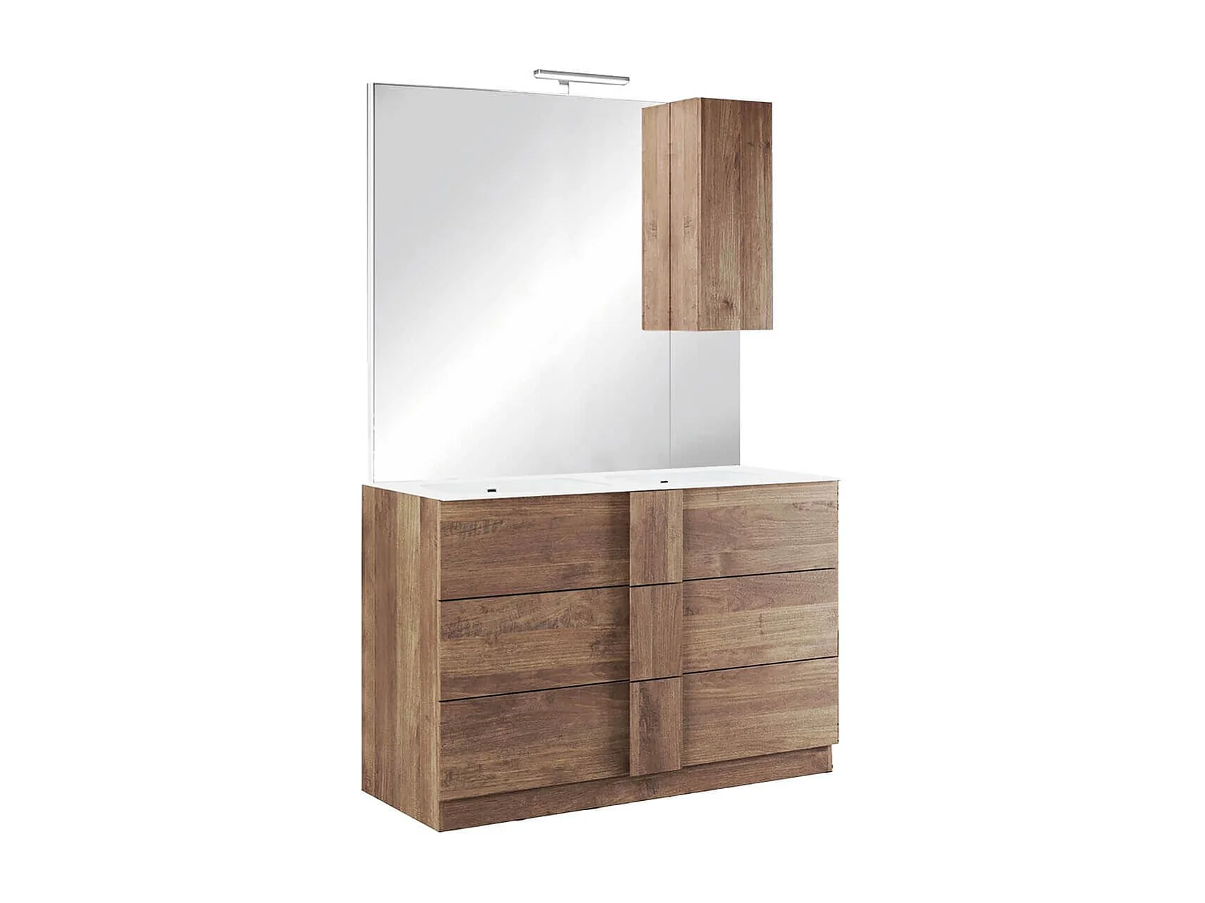 Meuble Vasque 122cm 3 tiroirs + Miroir aspect bois finition Mercure - ZEUS