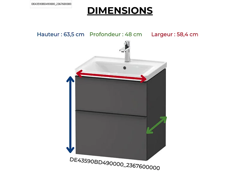 Meuble vasque 58 cm DURAVIT D-Neo Gris mat