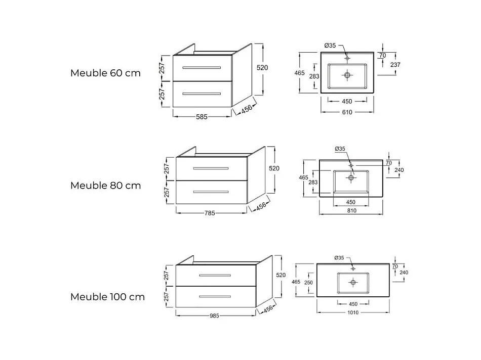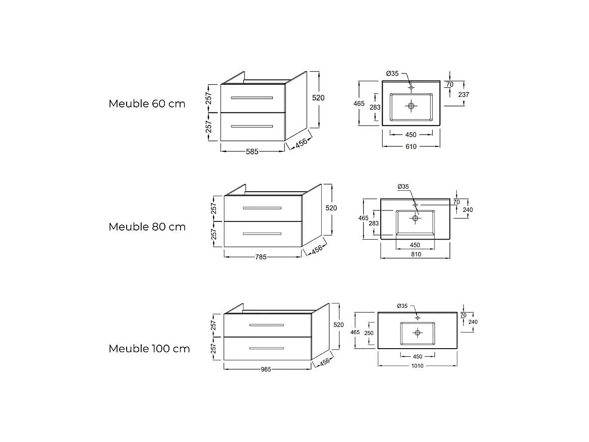Pack meuble vasque 60 cm JACOB DELAFON Ola up blanc + miroir + spot