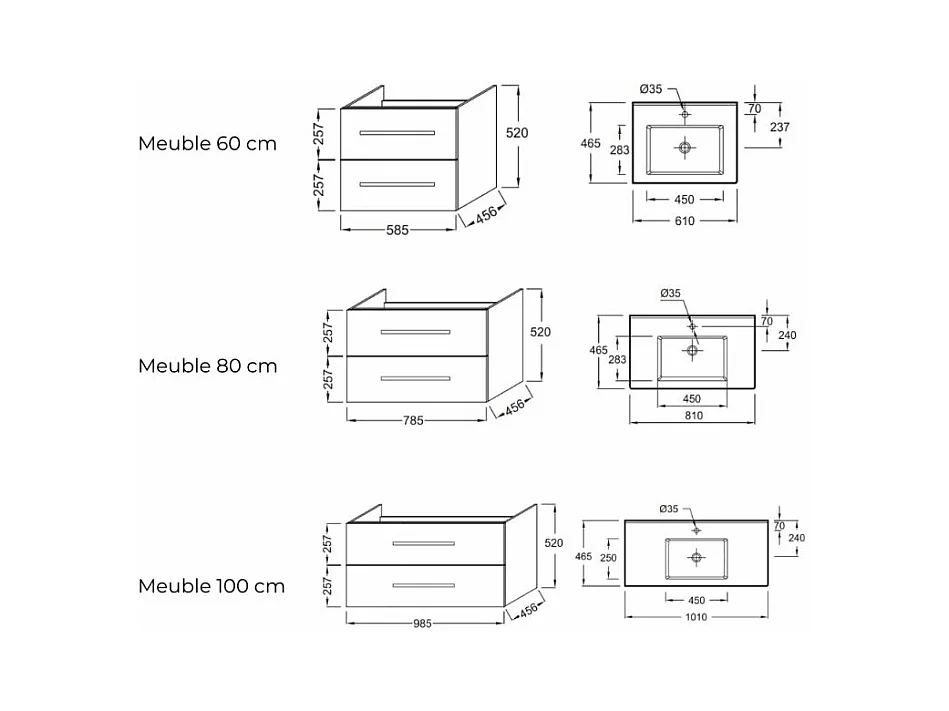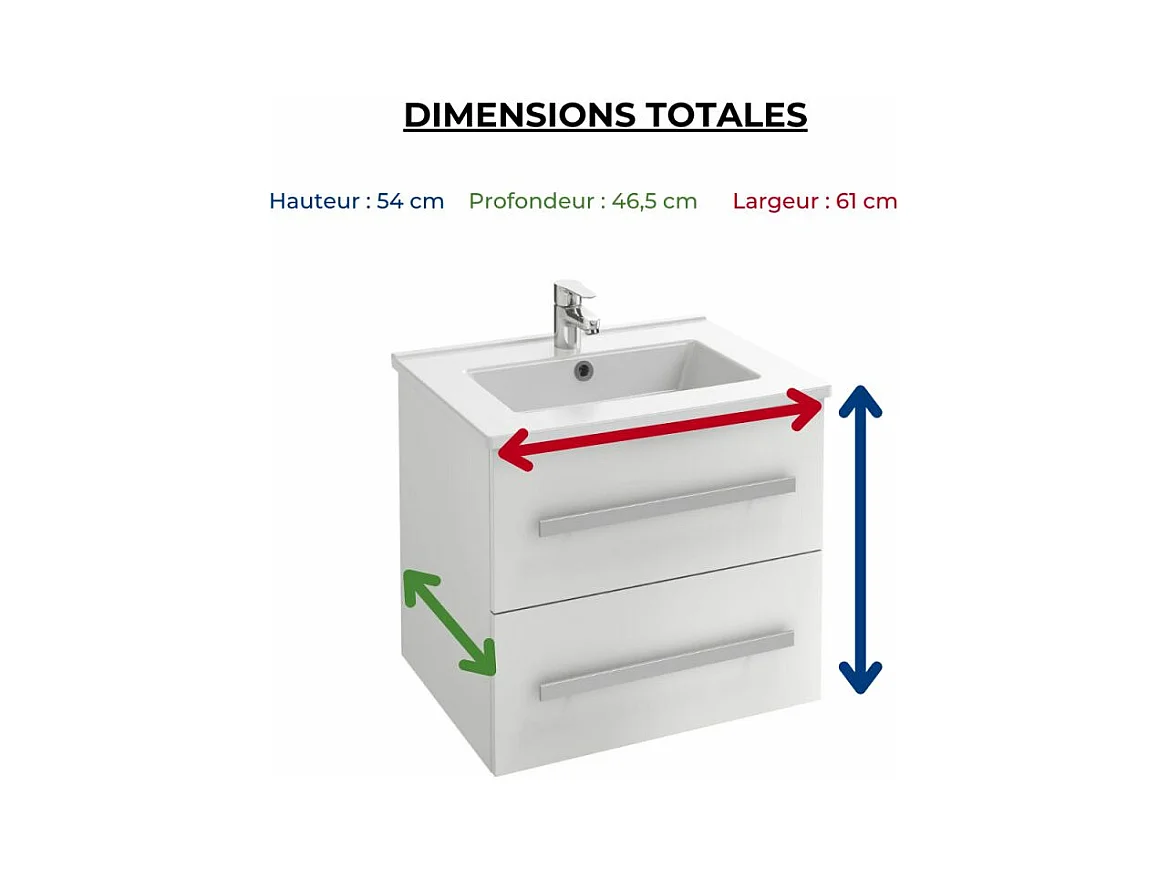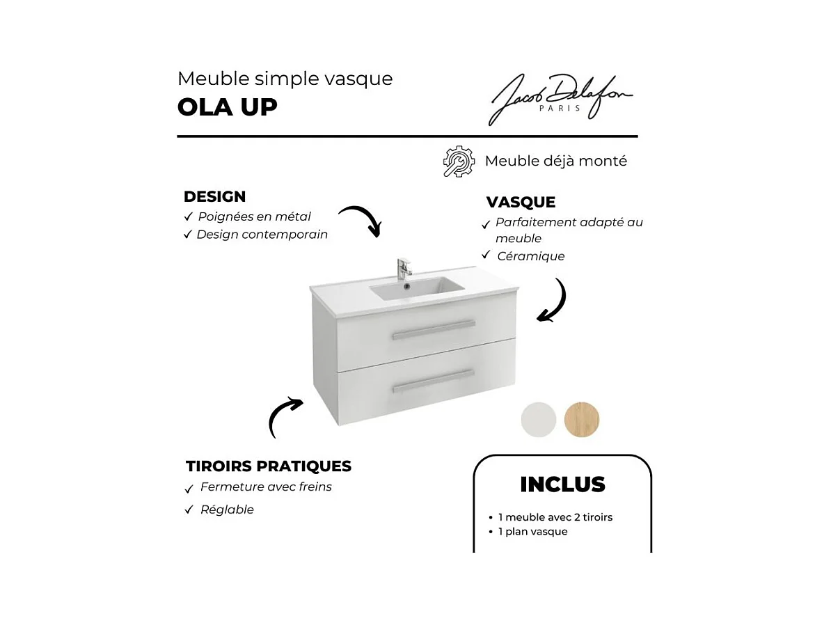 Pack meuble vasque 60 cm JACOB DELAFON Ola up blanc + colonne + miroir + spot