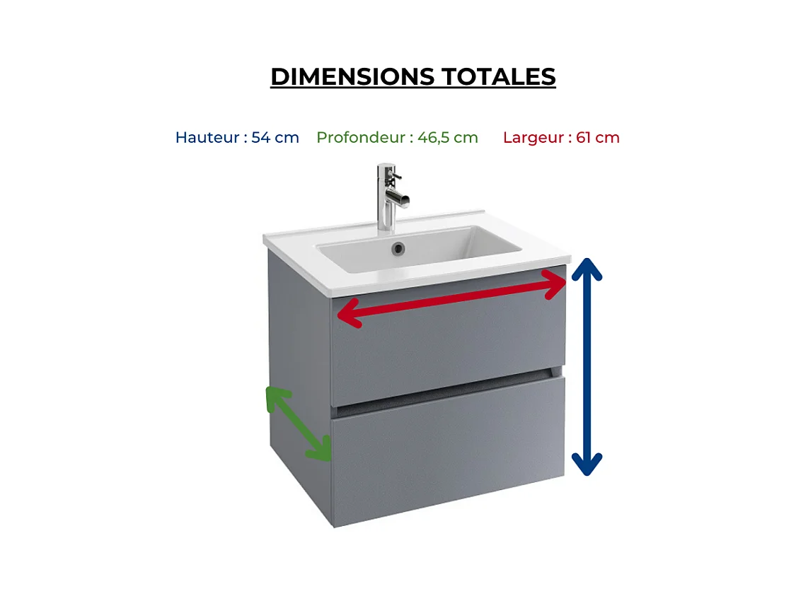 Meuble vasque 60 cm JACOB DELAFON Tolbiac gris anthracite + miroir led