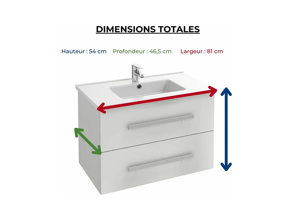 Pack meuble vasque 80 cm JACOB DELAFON Ola up blanc + colonne + miroir + spot