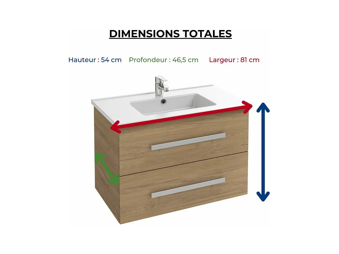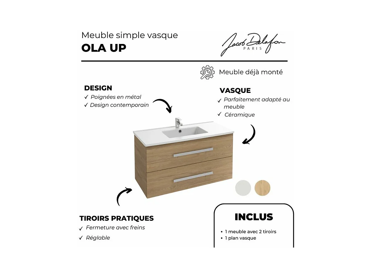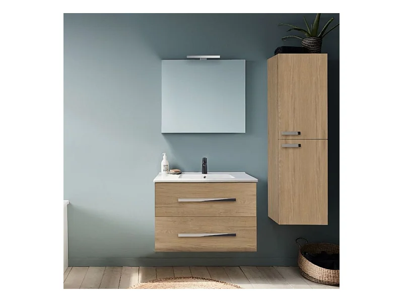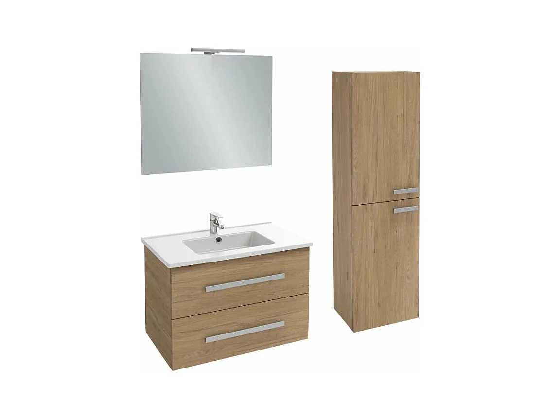 Pack meuble vasque 80 cm JACOB DELAFON Ola up chêne + colonne + miroir + spot