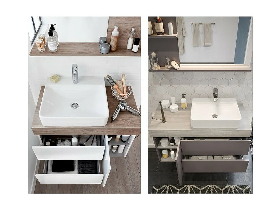 Meuble vasque à poser à gauche 83 cm JACOB DELAFON Sully blanc et chêne