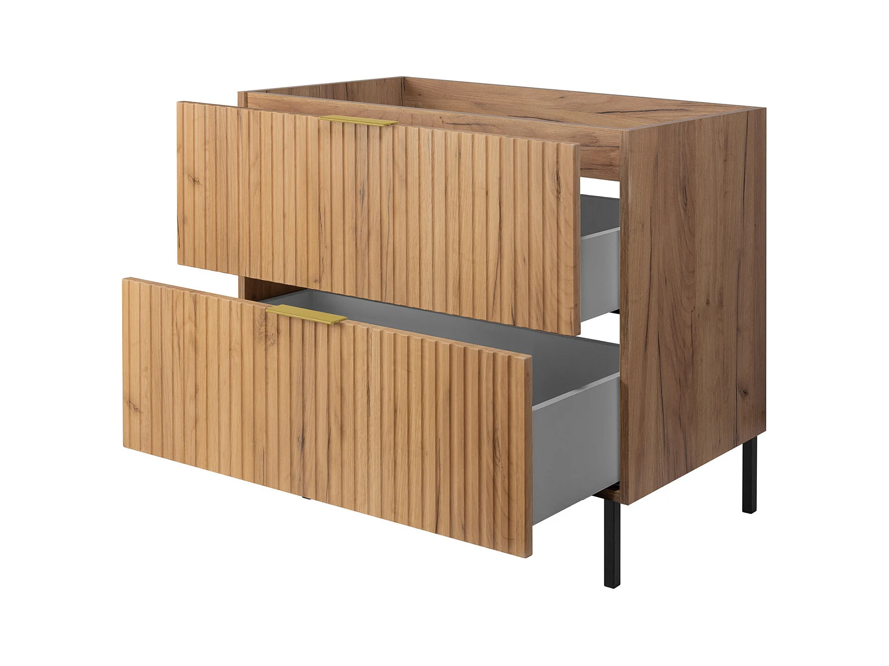 Meuble vasque, Chêne Craft, 80 x 77 x 46 cm, poignée dorée, pieds noirs, sans plateau